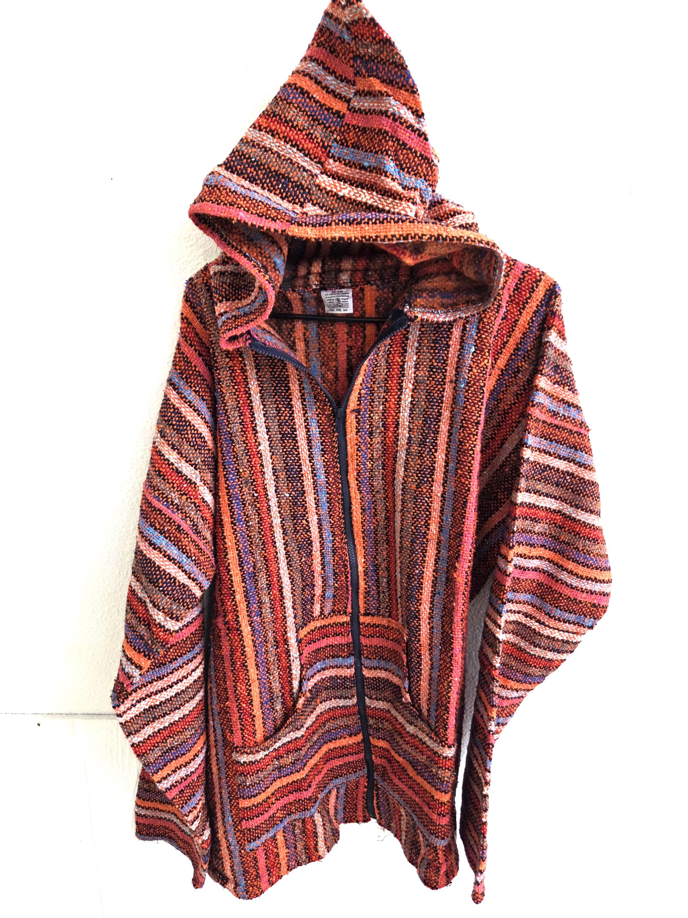Beautiful Baja Classic Hoodie Zipper Surfer Drug Rug from Mexico! This poncho would look wonderful on guys and even much better on our lovely lady friends. You will be getting the poncho that is actually shown above in the pictures above, not some poncho that looks kinda looks like it or is kinda the same color. We will soon have many different styles & colors of ponchos to pick from in many different sizes. You may also want to check out our awesome zippered ponchos.
