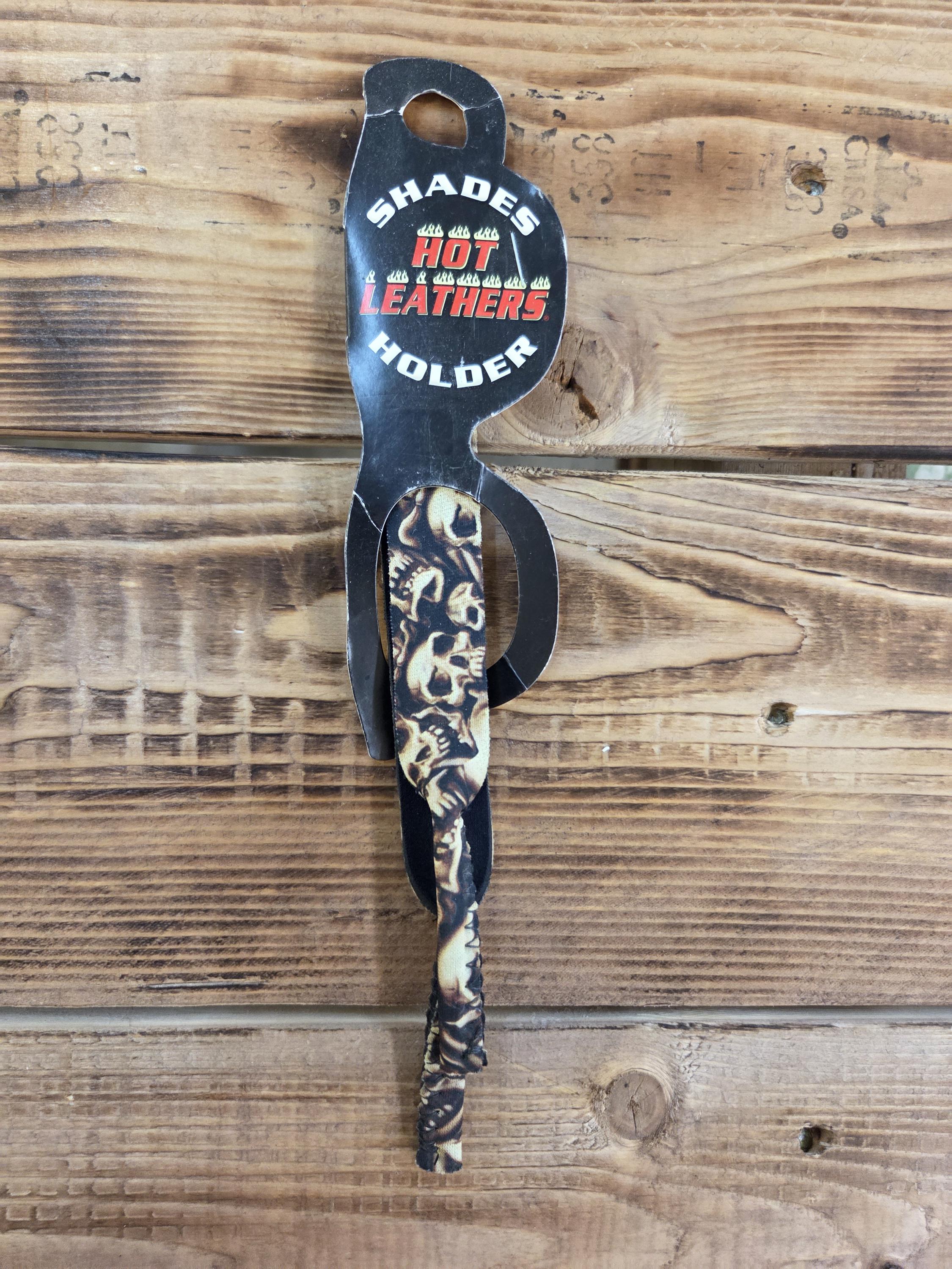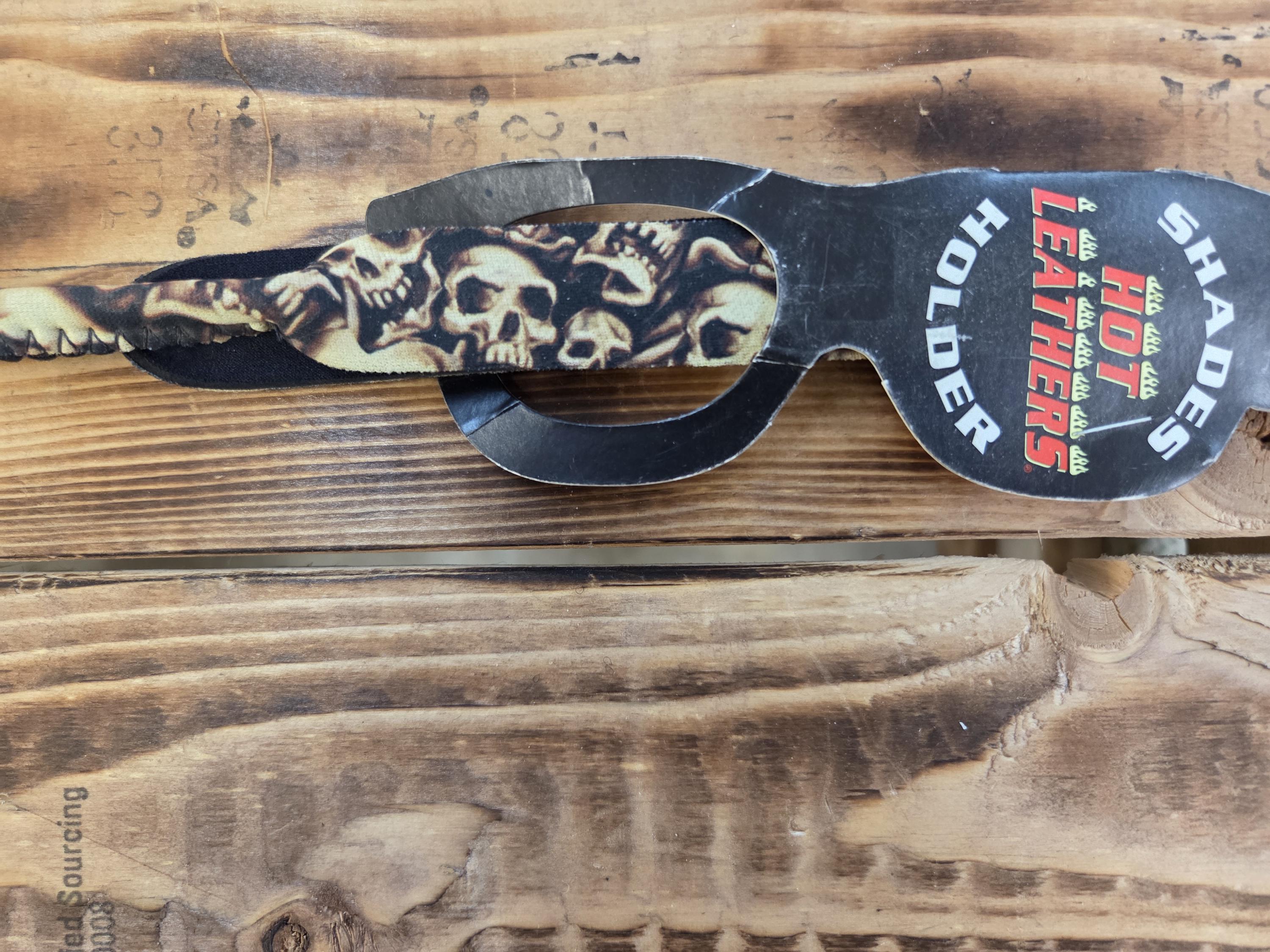 Biker Sunglass Holder | Cloth Motorcycle Eyeglass Clip by Hot Leathers. Cloth and neoprene. The arms of your glasses just slide into the ends of the eyeglass holders. A perfect little throwback from my biker rally days. This Hot Leathers cloth sunglass holder is a practical, old‑school biker accessory designed to keep your shades secure and within easy reach. Originally part of biker rally merchandise, these are brand‑new leftovers—never used, never opened, and ready for the road.