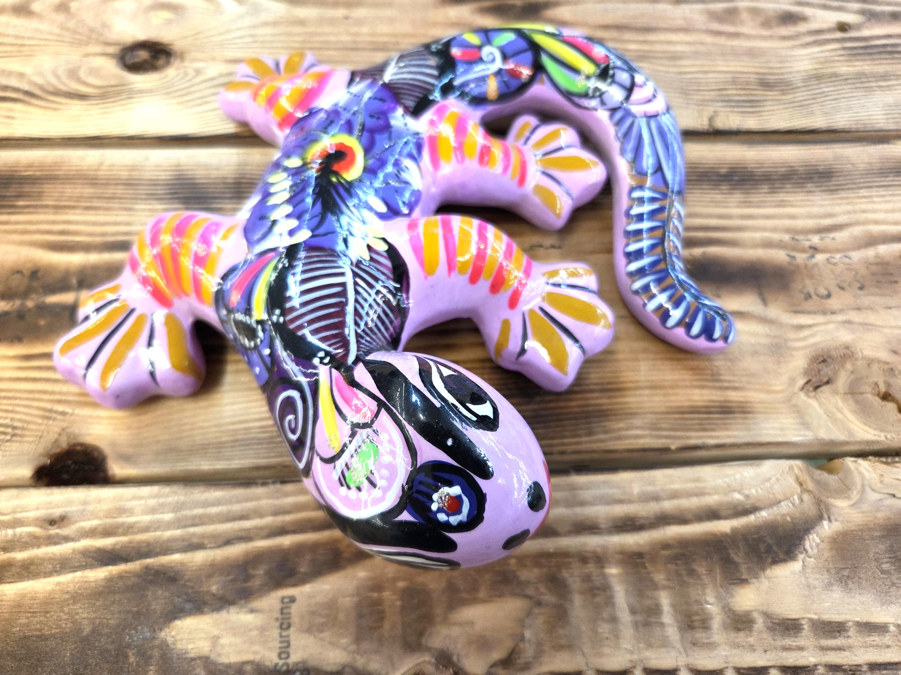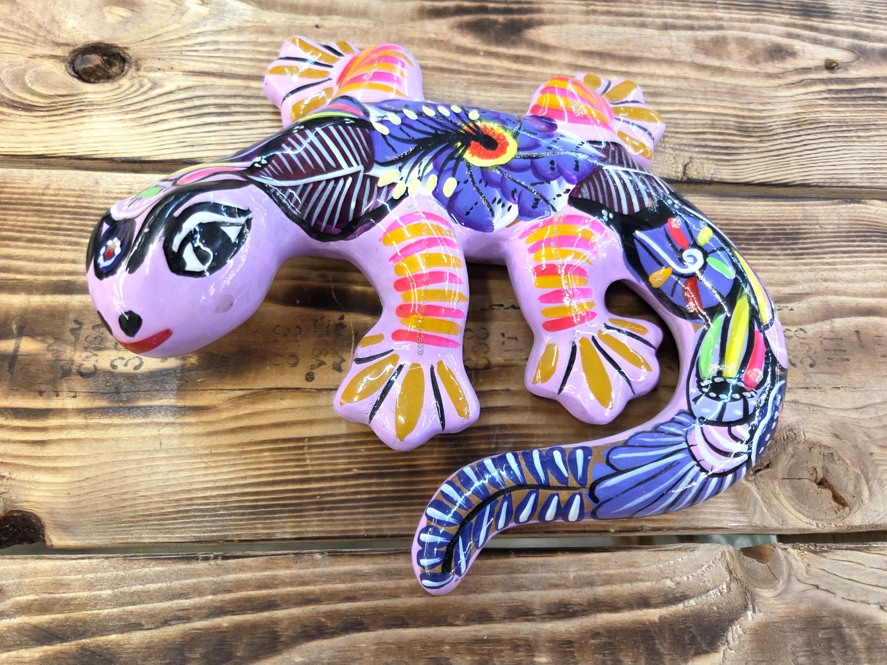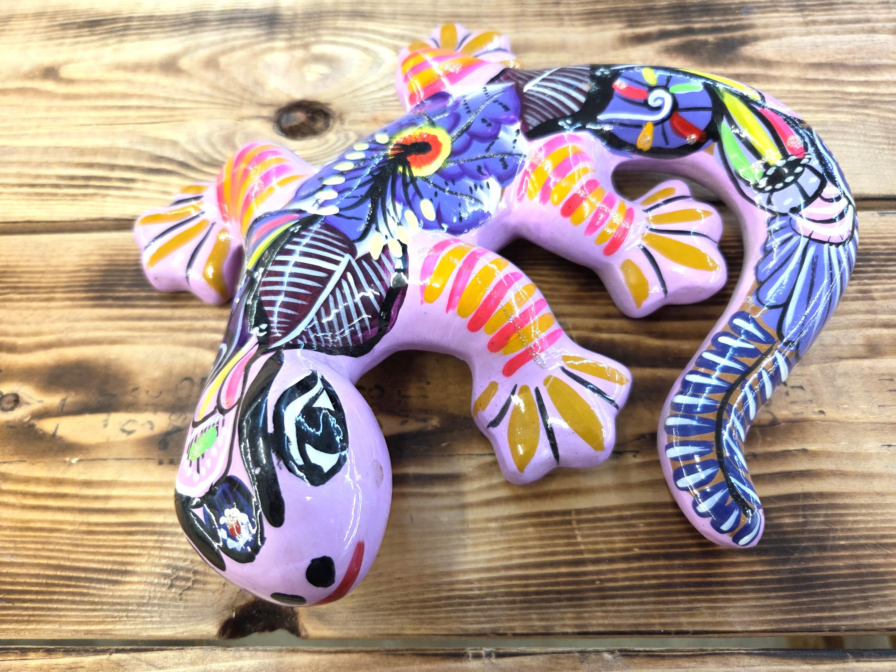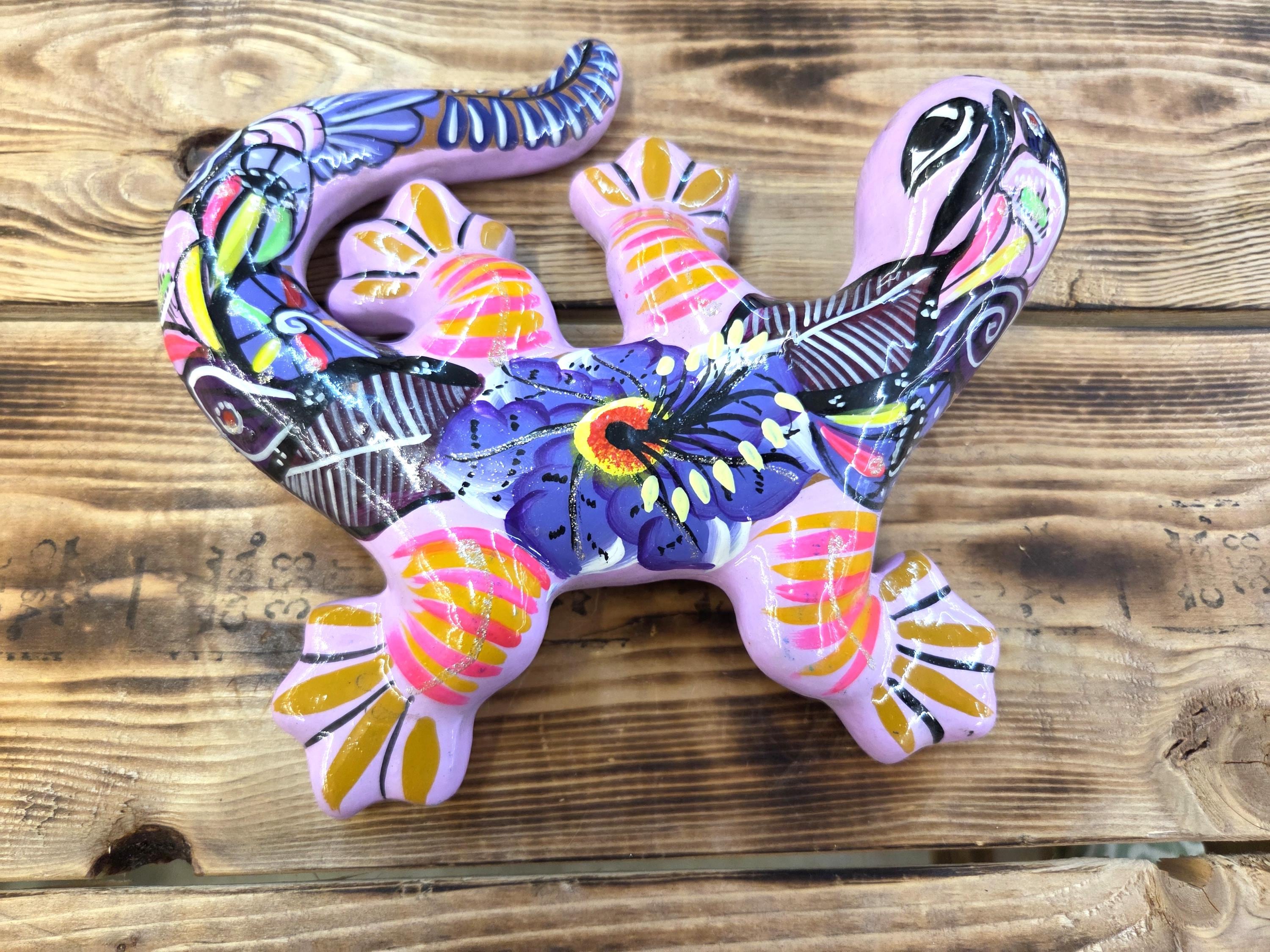 Beautiful Hand Made Gecko Lizard Wall Art Figure Made by Mexican Artisans. These unique pieces would look so great on patio wall or inside your home or office. Why gift something just ordinary? This item would also make a very unique gift for a relative or a friend. As they are actually handmade and hand painted individually, rather than factory made, there can be minor imperfections, but the look is awesome when they are up. You would receive the item shown in the pictures. Measures roughly 8 1/2" long by 8" wide" irregular. We will be adding many beautiful handmade artistic items here in my Etsy shop on a regular basis.