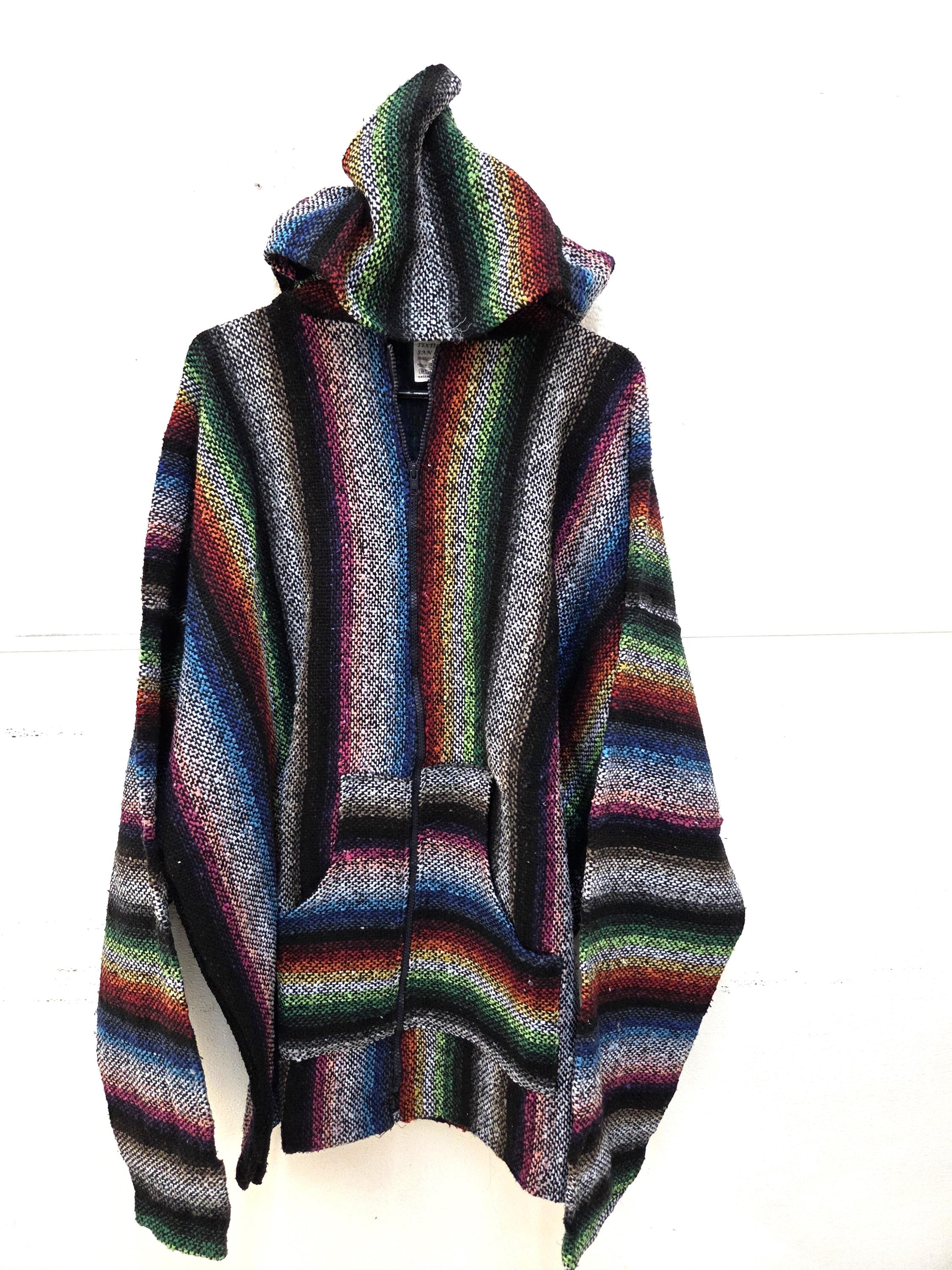 Bring bold Baja style to your wardrobe with this Much Preferred Zipper Baja Surfer Hoodie — an authentic serape‑inspired drug rug poncho handmade in Mexico. This vibrant unisex jacket looks incredible on everyone, from laid‑back beach lovers to festival‑goers and cozy‑weather fans. Crafted with a soft, durable weave and featuring a roomy front hand‑warmer pocket, it’s perfect for cool nights, road trips, bonfires, and everyday comfort. The best part: you’ll receive the exact hoodie shown in the photos, not a random variation. More colors, patterns, and sizes are coming soon, so keep an eye out for new arrivals. Whether you’re treating yourself or gifting someone special, this unique Baja hoodie is anything but ordinary.