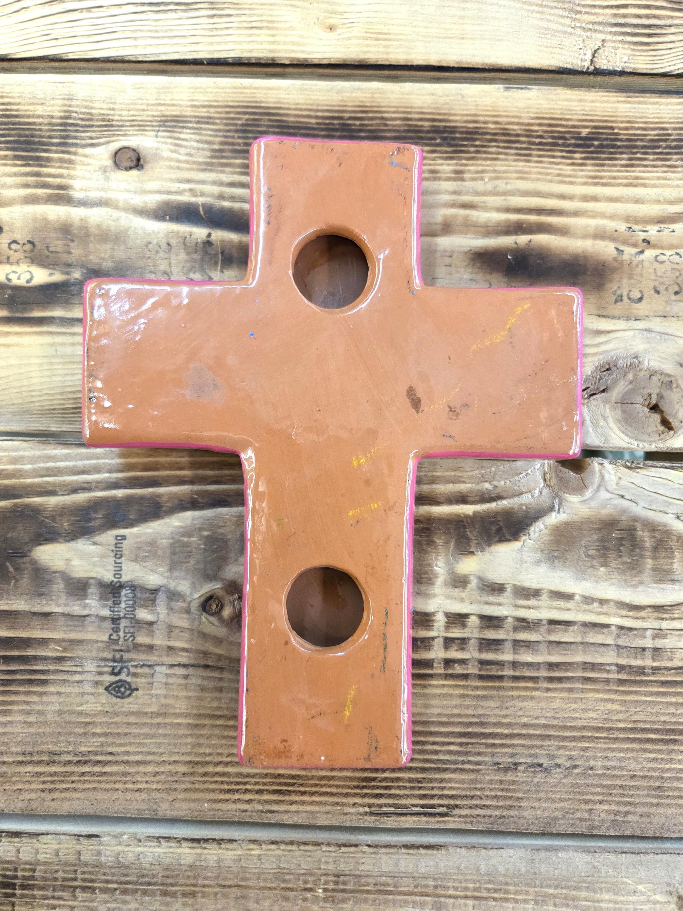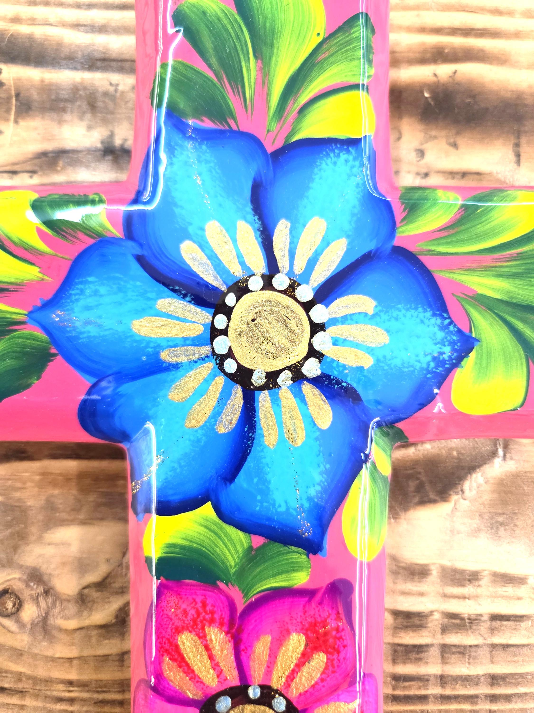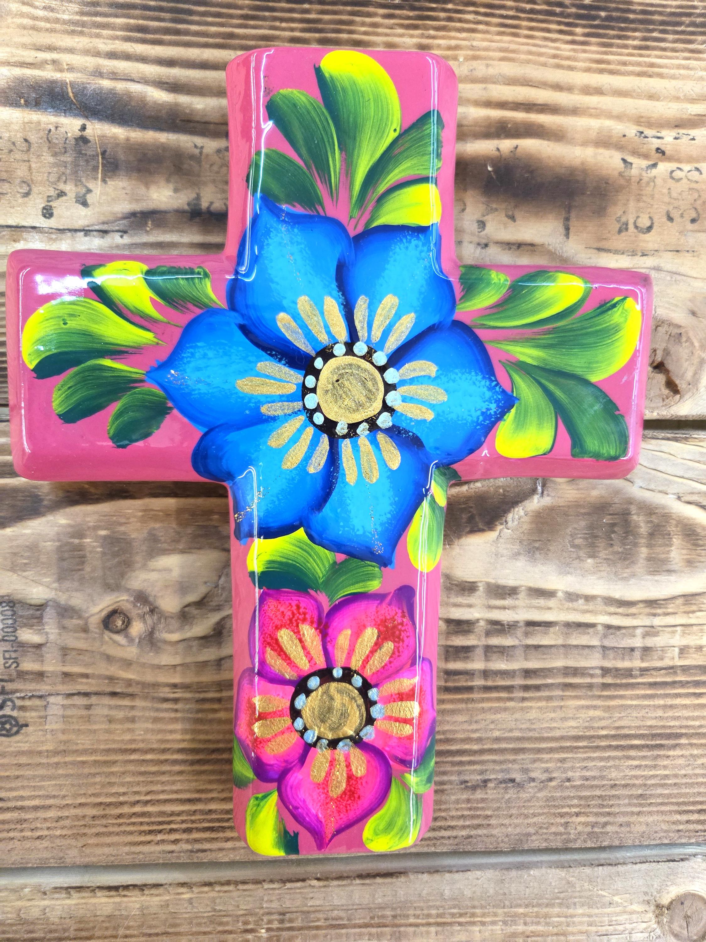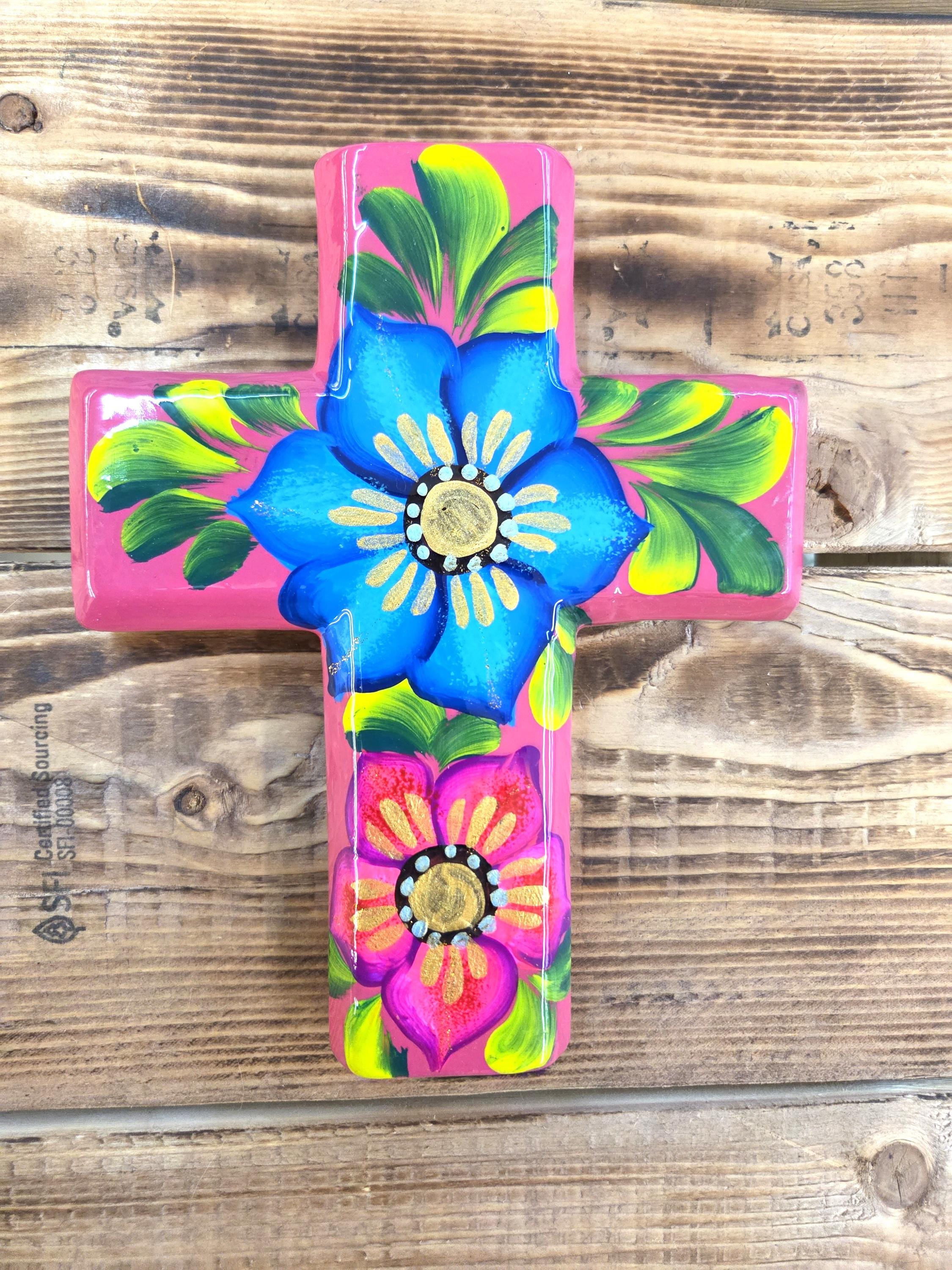 Add a touch of authentic Mexican artistry to your home with this one‑of‑a‑kind hand‑painted cross, crafted by skilled artisans in Mexico. Standing approximately 8¼" tall and 6½" wide, each piece features unique, irregular shaping and beautifully detailed hand‑painted designs that celebrate traditional craftsmanship. Because every cross is handmade rather than machine‑produced, slight imperfections may appear—these natural variations are part of its charm and ensure that no two pieces are ever alike. The cross includes a convenient hole on the back for easy wall hanging, making it a meaningful and eye‑catching addition to any room or a thoughtful gift for someone special.