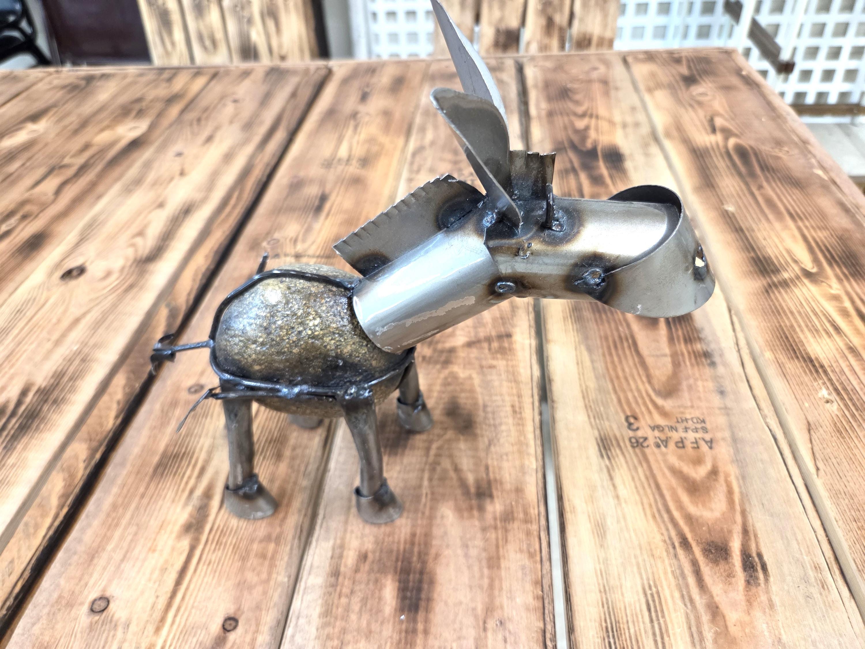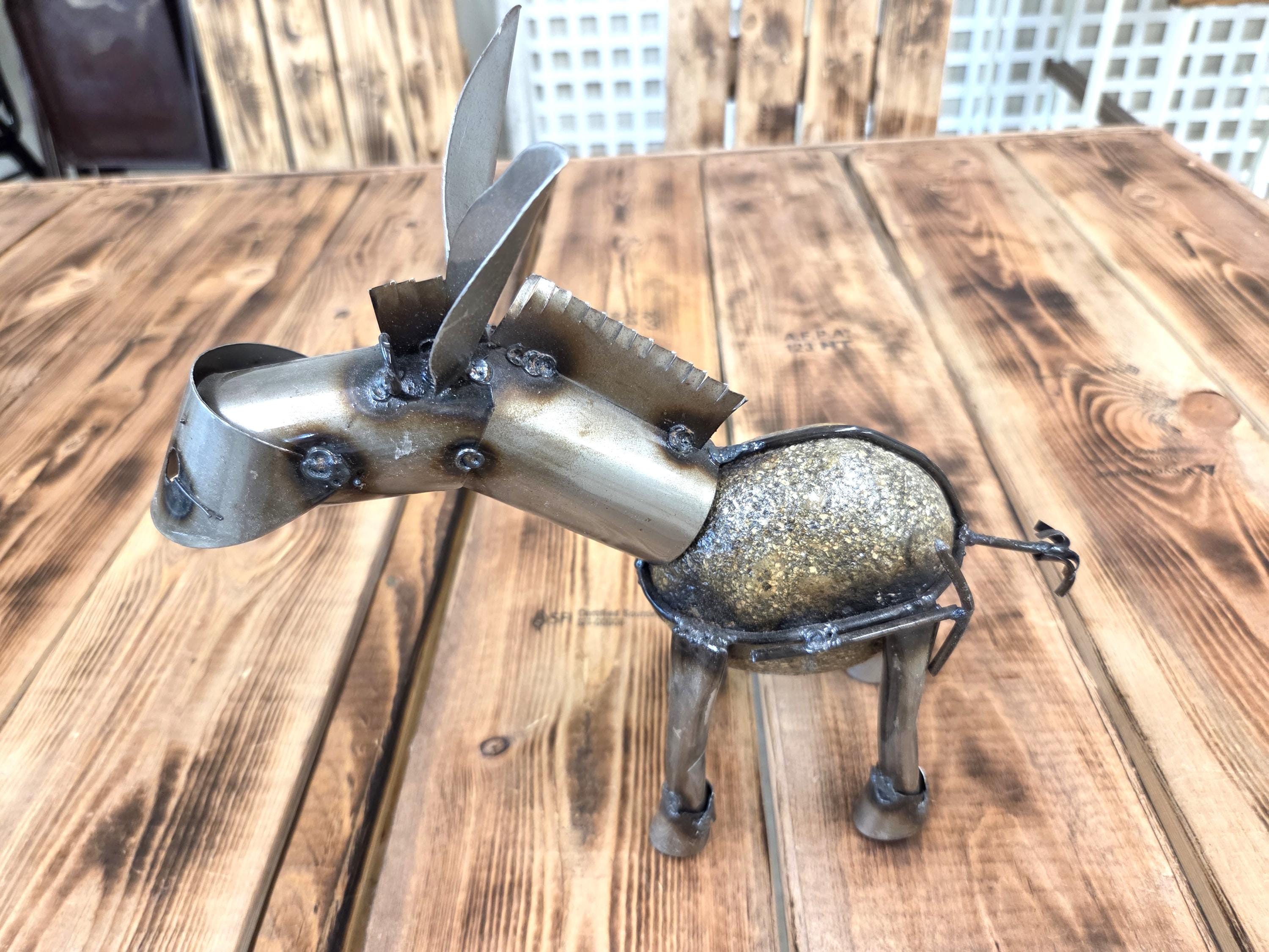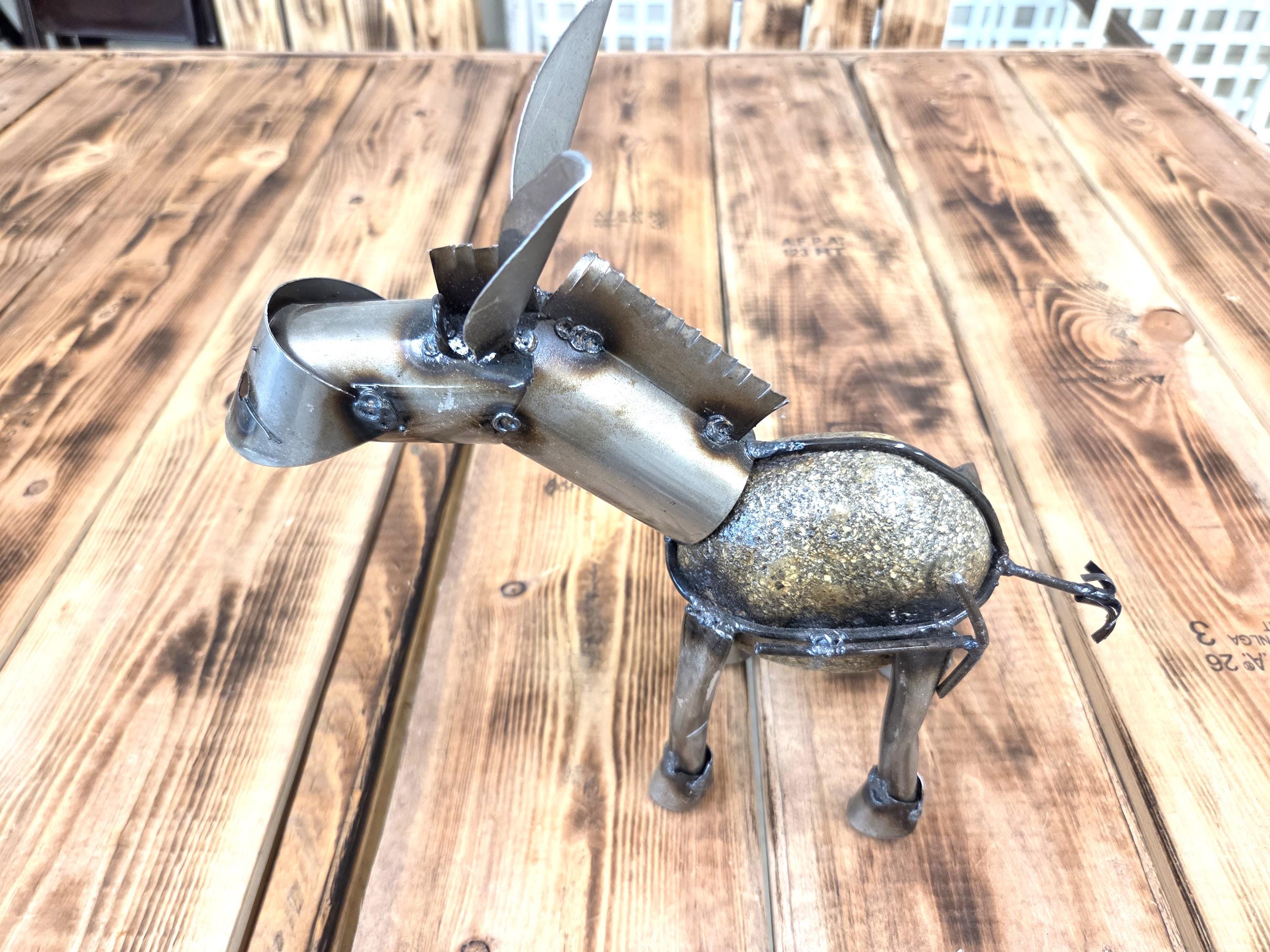 Bring a touch of rustic Western charm to your outdoor space with this handmade 10.5" metal miner’s donkey sculpture, crafted to capture the hardworking spirit of a classic miner's burro and his trusty shovel. Doesn't eat much at all. Each piece is individually cut, shaped, and finished, giving it a unique character and weathered texture that looks stunning in gardens, patios, walkways, and desert‑inspired landscapes. Durable enough for year‑round outdoor display, this charming little miner adds personality and storytelling to any yard—perfect for Western décor lovers, metal art collectors, or anyone who appreciates handcrafted artisan work.