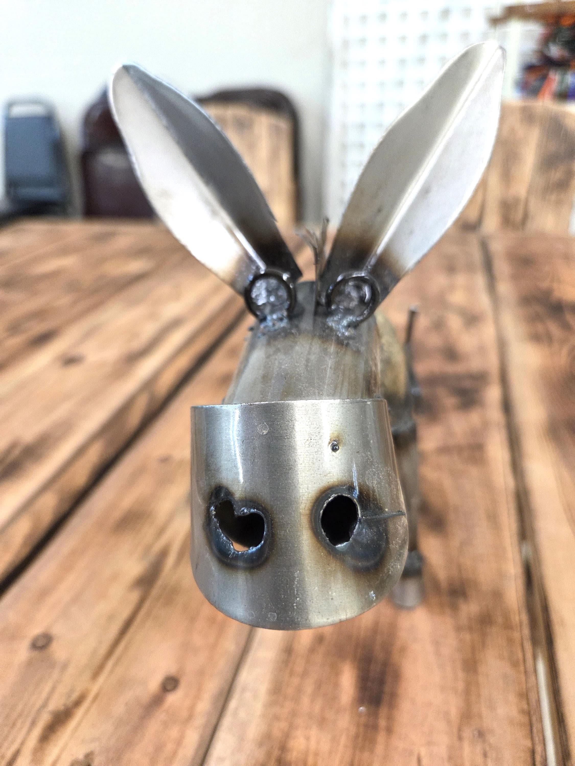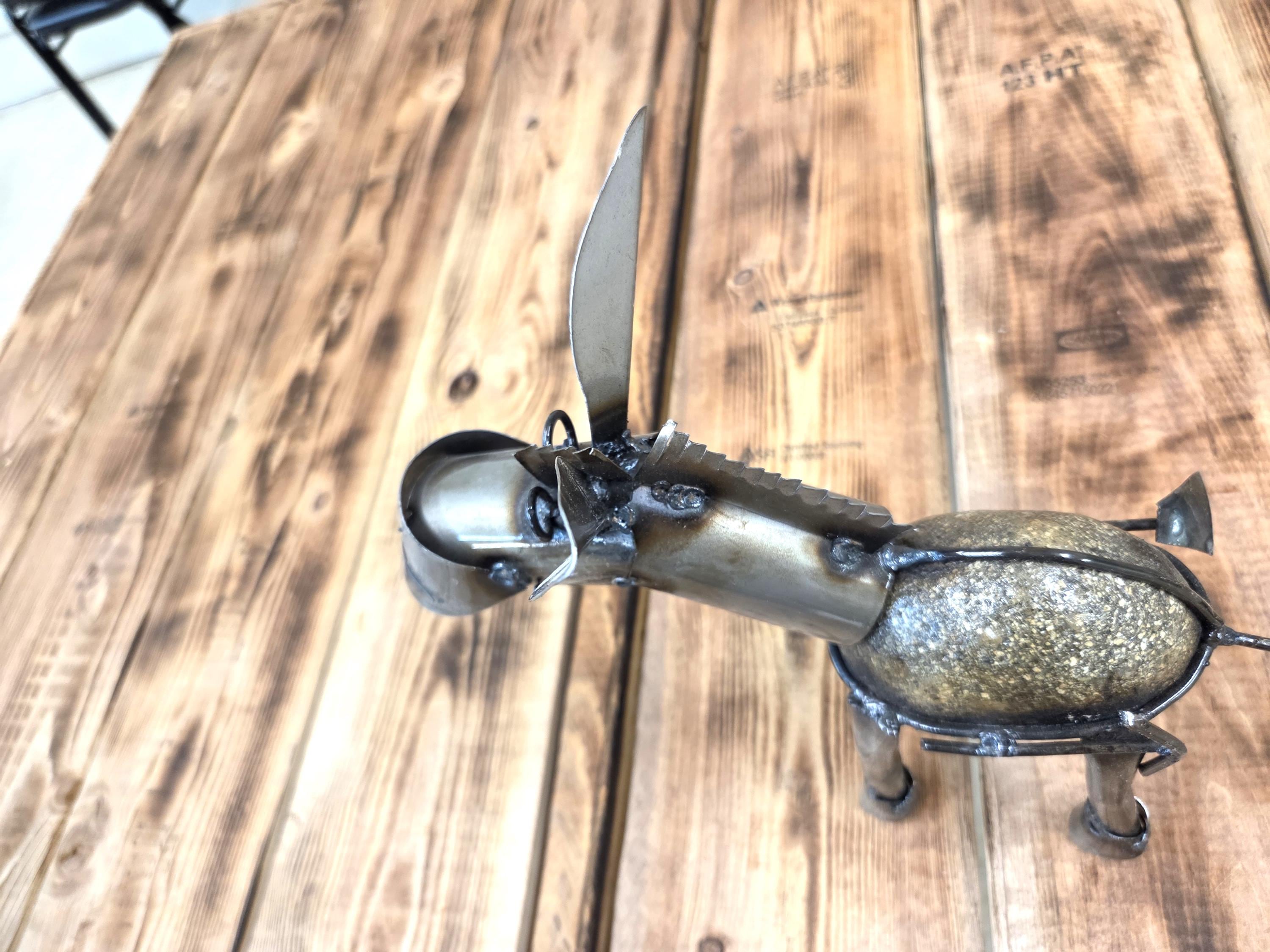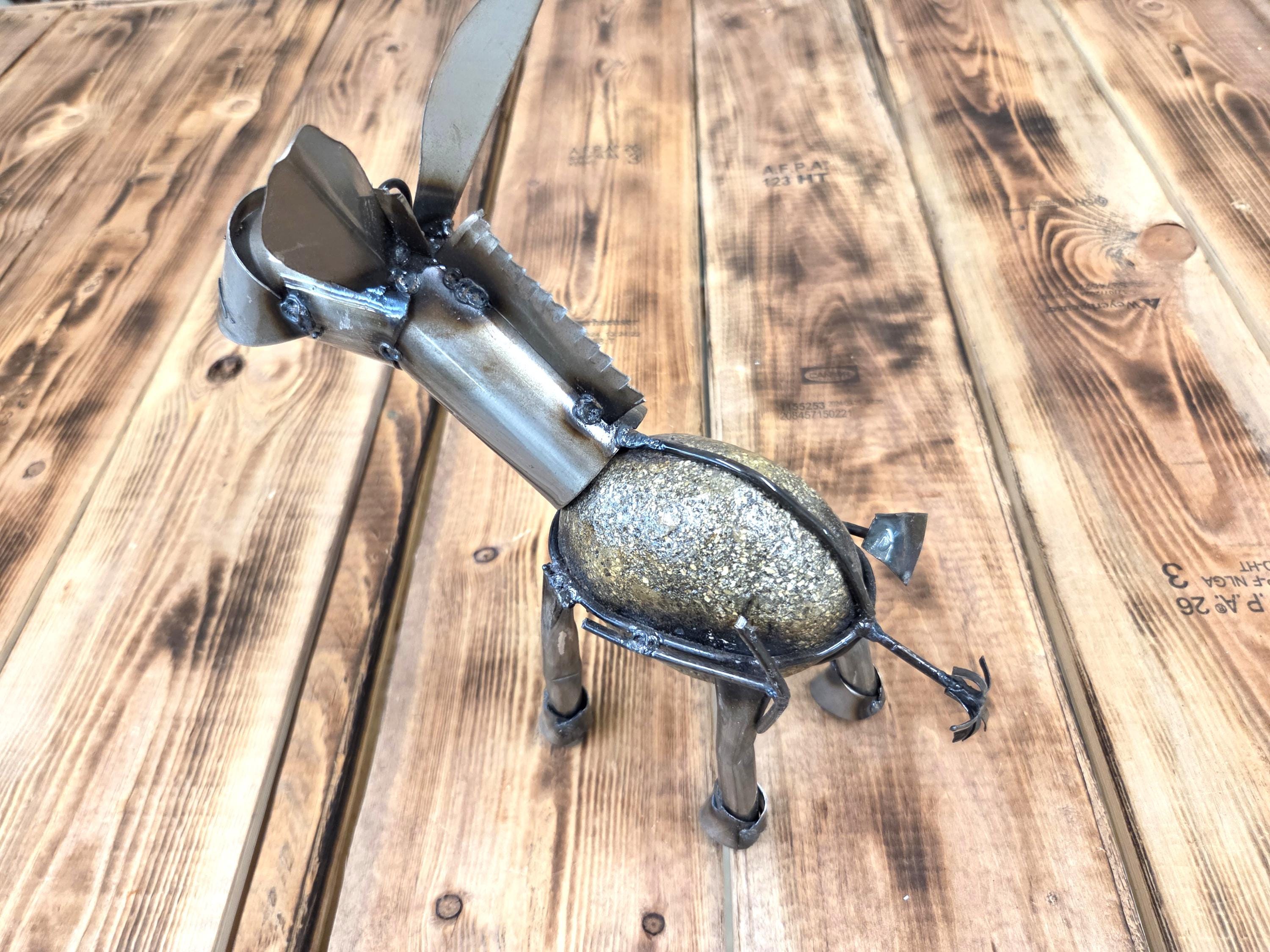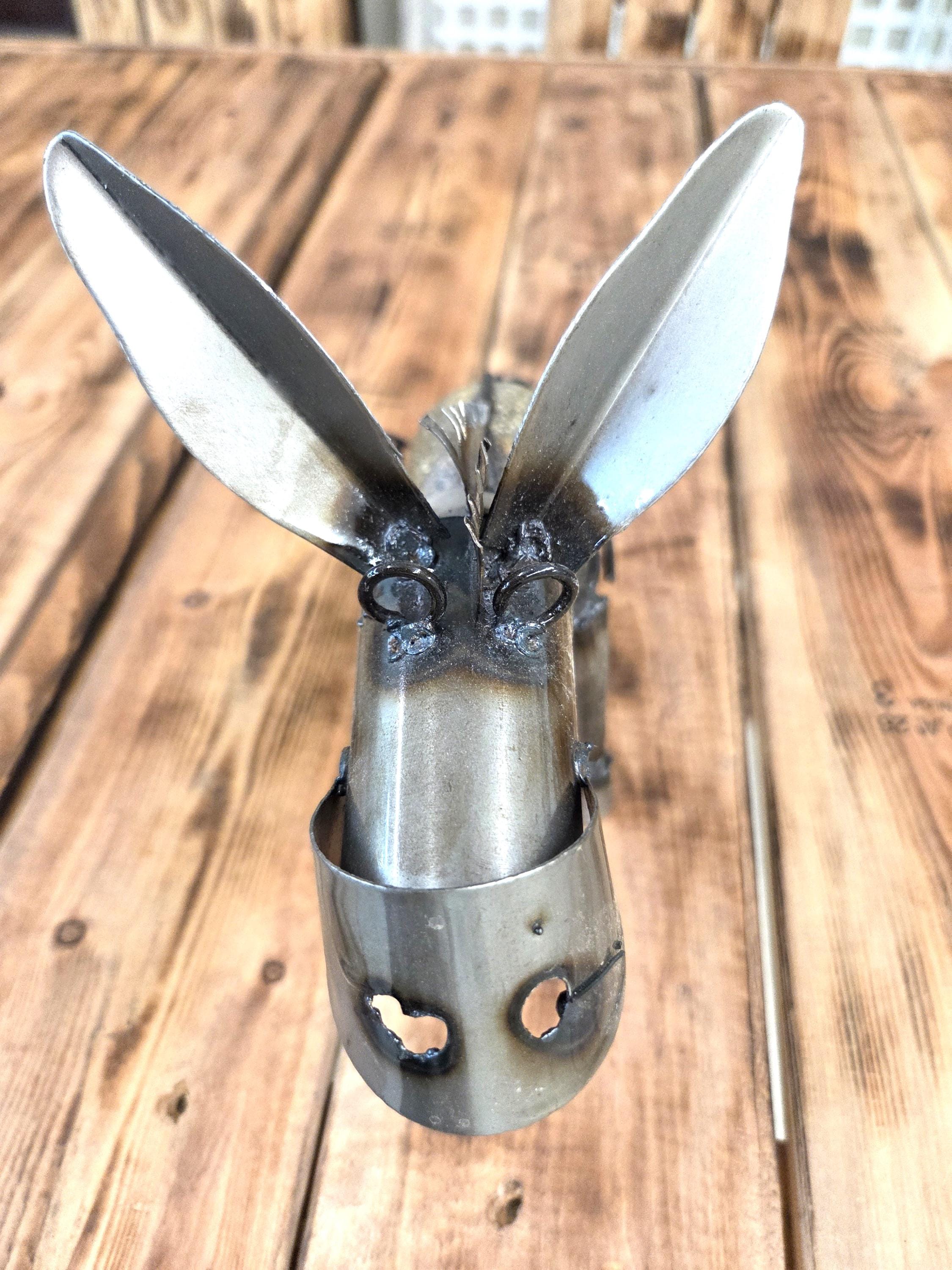 Bring a touch of rustic Western charm to your outdoor space with this handmade 10.5" metal miner’s donkey sculpture, crafted to capture the hardworking spirit of a classic miner's burro and his trusty shovel. Doesn't eat much at all. Each piece is individually cut, shaped, and finished, giving it a unique character and weathered texture that looks stunning in gardens, patios, walkways, and desert‑inspired landscapes. Durable enough for year‑round outdoor display, this charming little miner adds personality and storytelling to any yard—perfect for Western décor lovers, metal art collectors, or anyone who appreciates handcrafted artisan work.