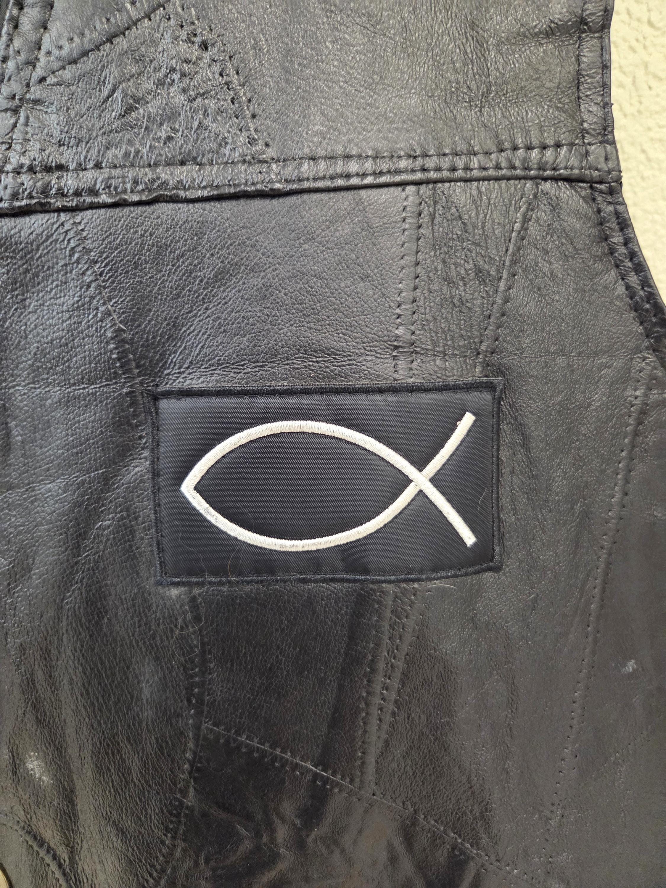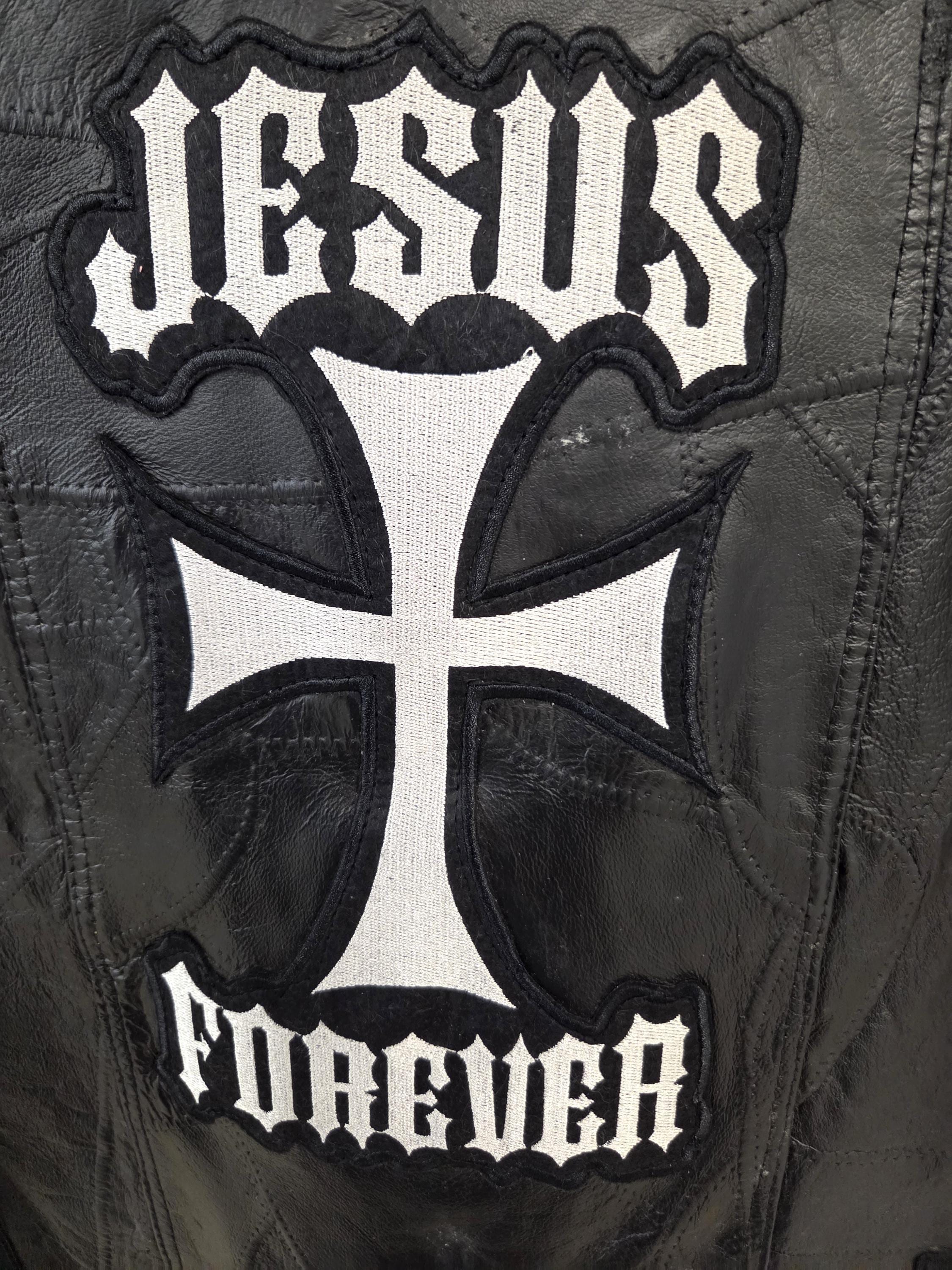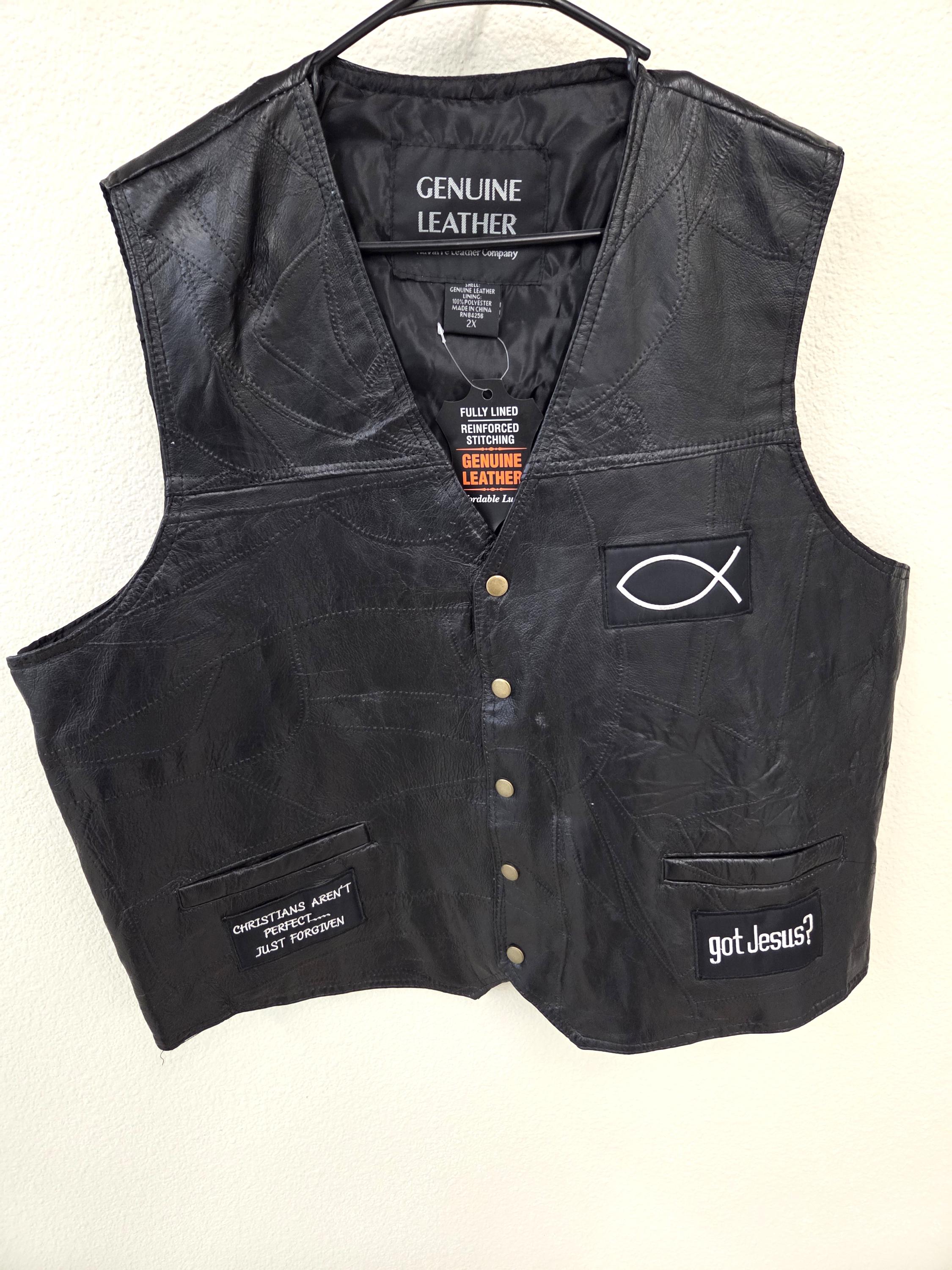 This 2X Jesus Forever leather biker vest is a rare find, especially with six professionally sewn patches already included, saving you both time and money. Built for comfort and durability, it features a smooth polyester lining, secure snap‑front closure, and 2 front slit pockets for everyday riding essentials. Brand new and never worn, this vest still has plenty of room for your own customization—add more patches, conchos, or personal touches to make it uniquely yours. With only one left in this size, it’s a great deal that won’t stick around long.