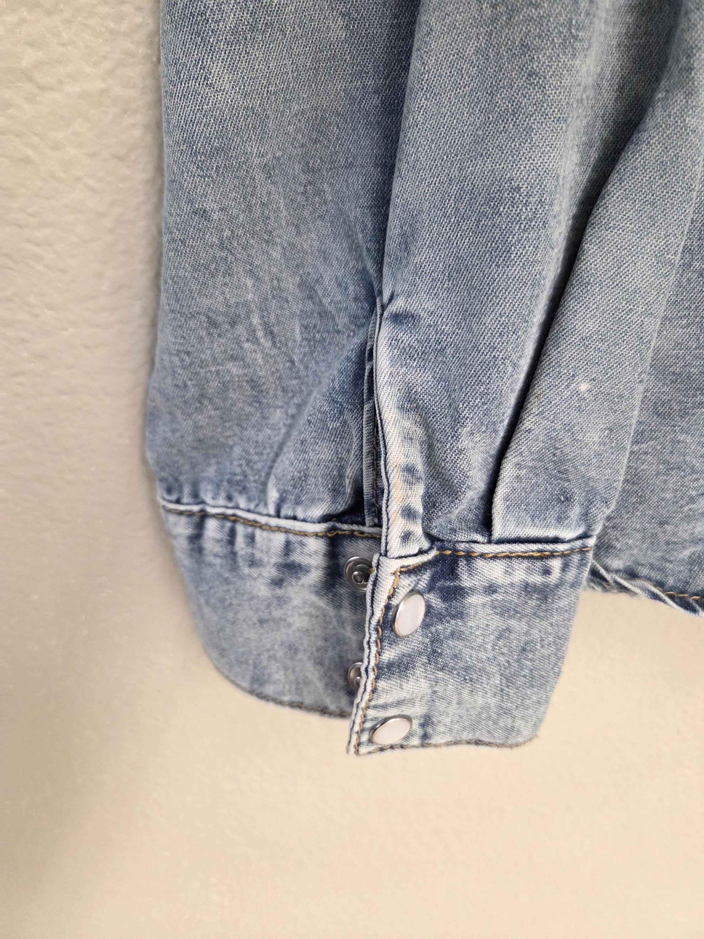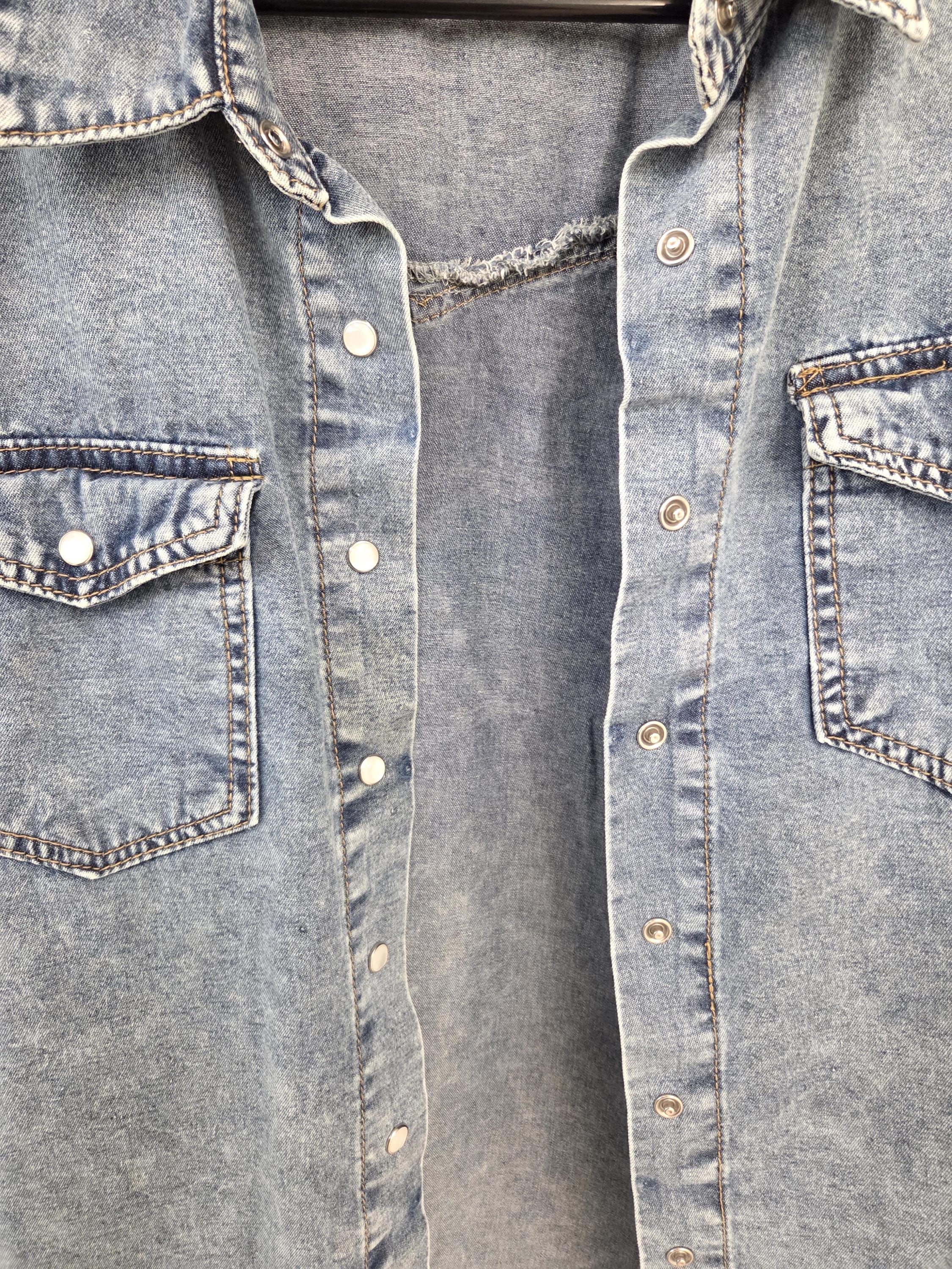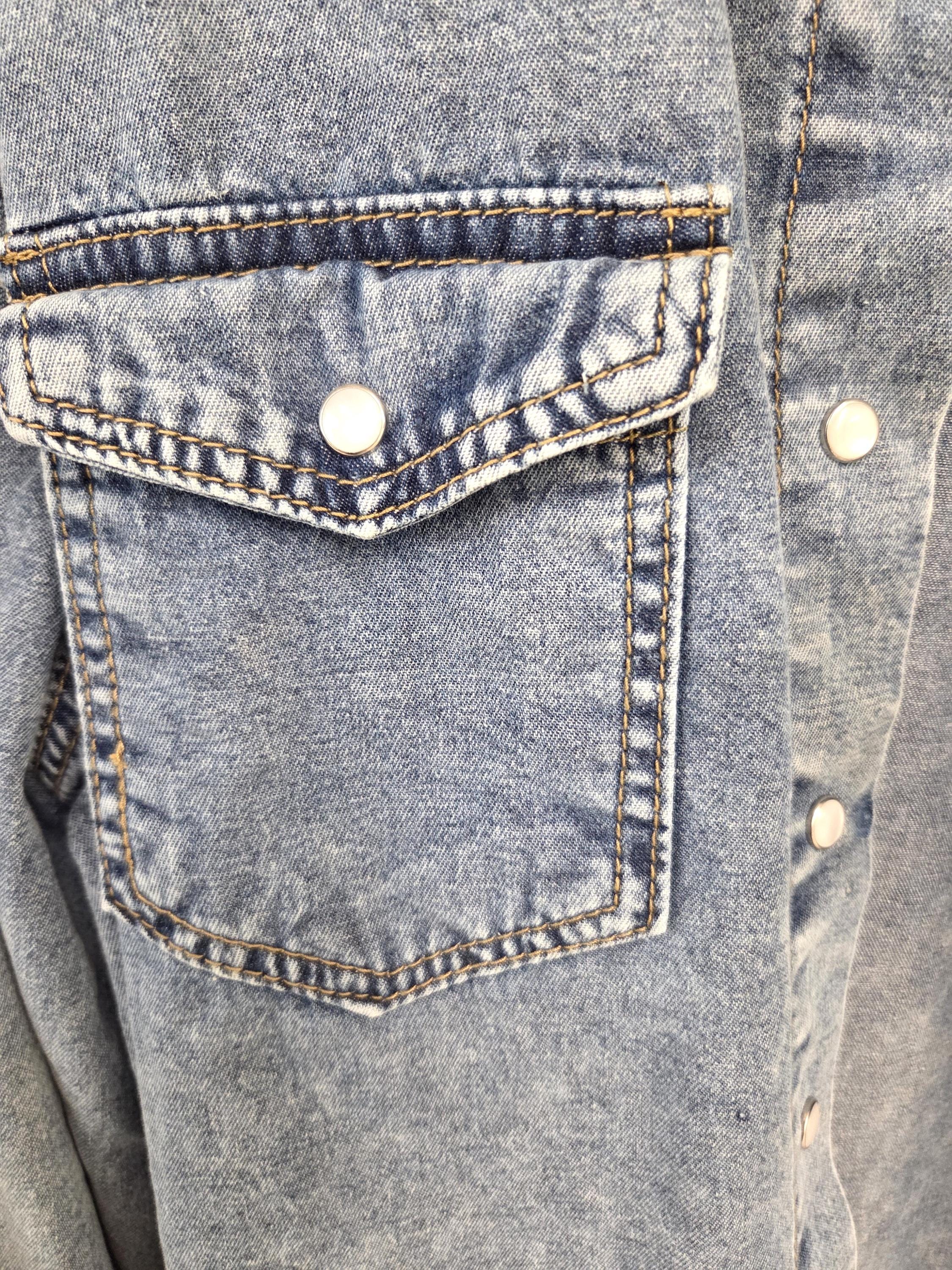 Bring classic Western charm into your wardrobe with this Women’s 2X long‑sleeve denim‑look vest, designed with a flattering fit and a rugged, versatile style. The 6 pearl look front snaps give it that authentic jean‑vest feel while keeping it easy to layer over tees, flannels, or tanks. It's ready to apply patches, pins, or conchos for some added flair if desired. 100% cotton. Whether you love Western fashion, biker style, or country‑inspired outfits, this piece adds the perfect touch of attitude and everyday comfort. Durable, stylish, and effortless to wear—great for rodeos, concerts, casual days out, or adding a little edge to your favorite looks.