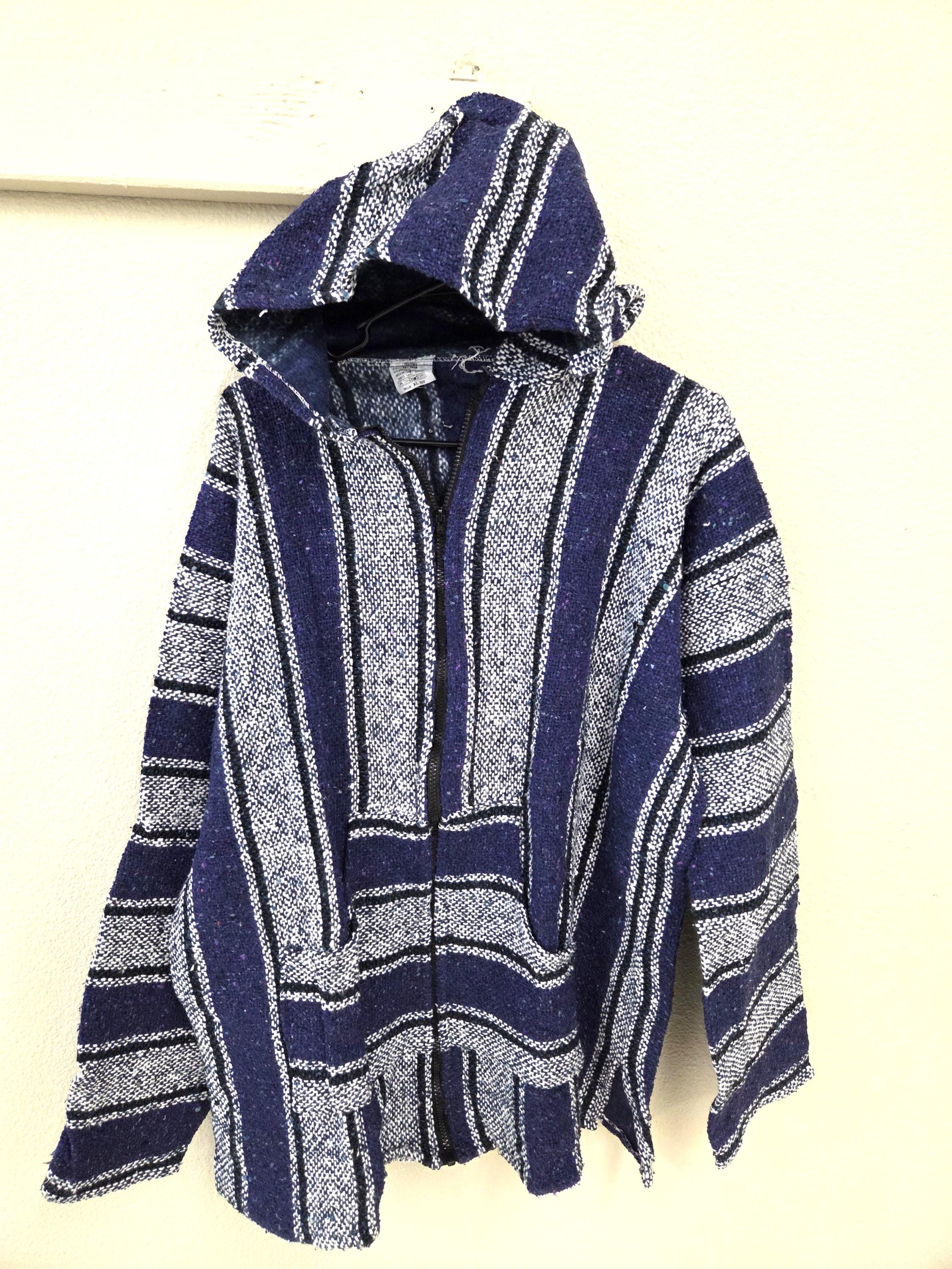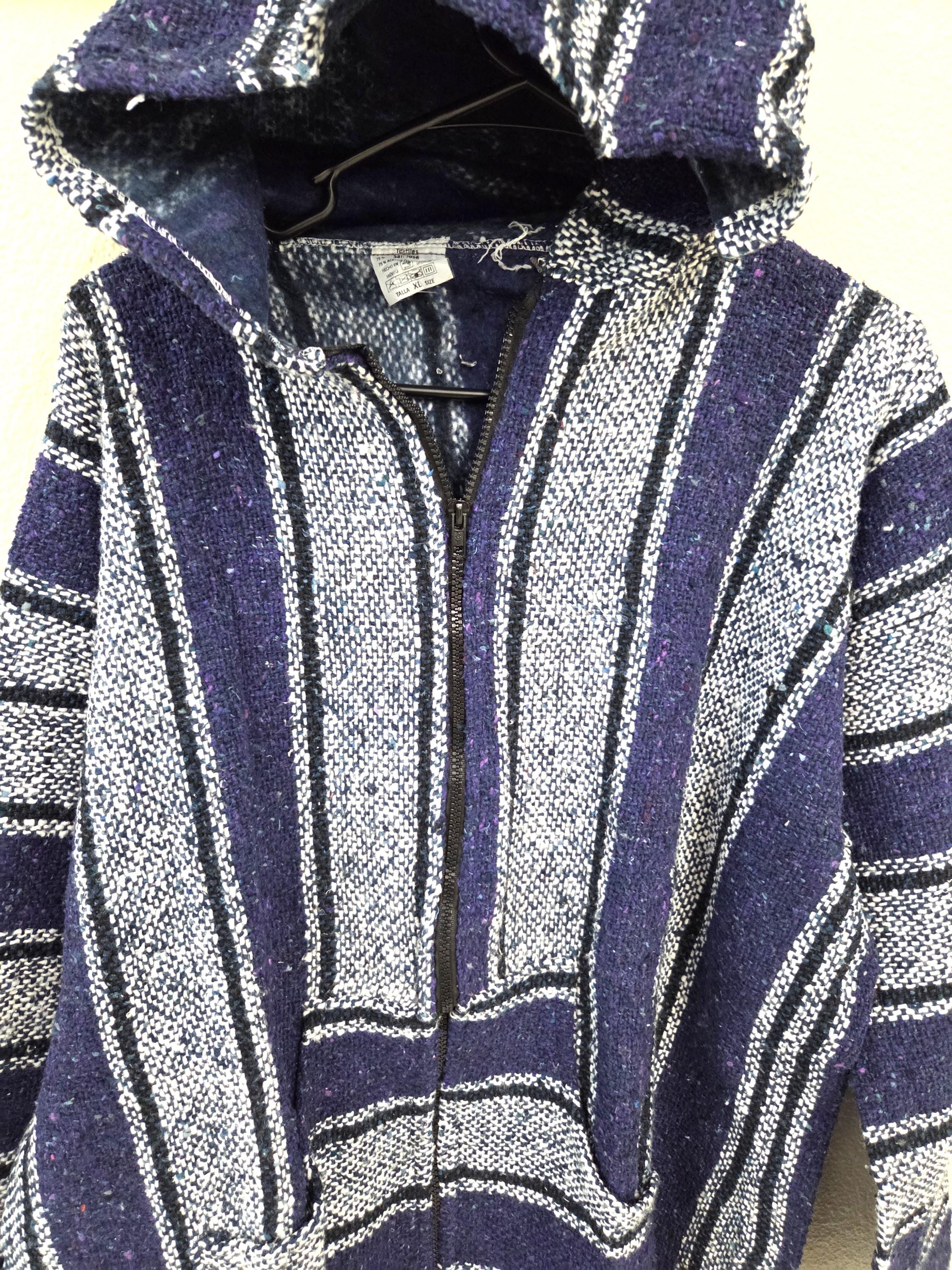 XL Zipper Baja Surfer Beach Hoodie Poncho – Serape Outerwear from Mexico