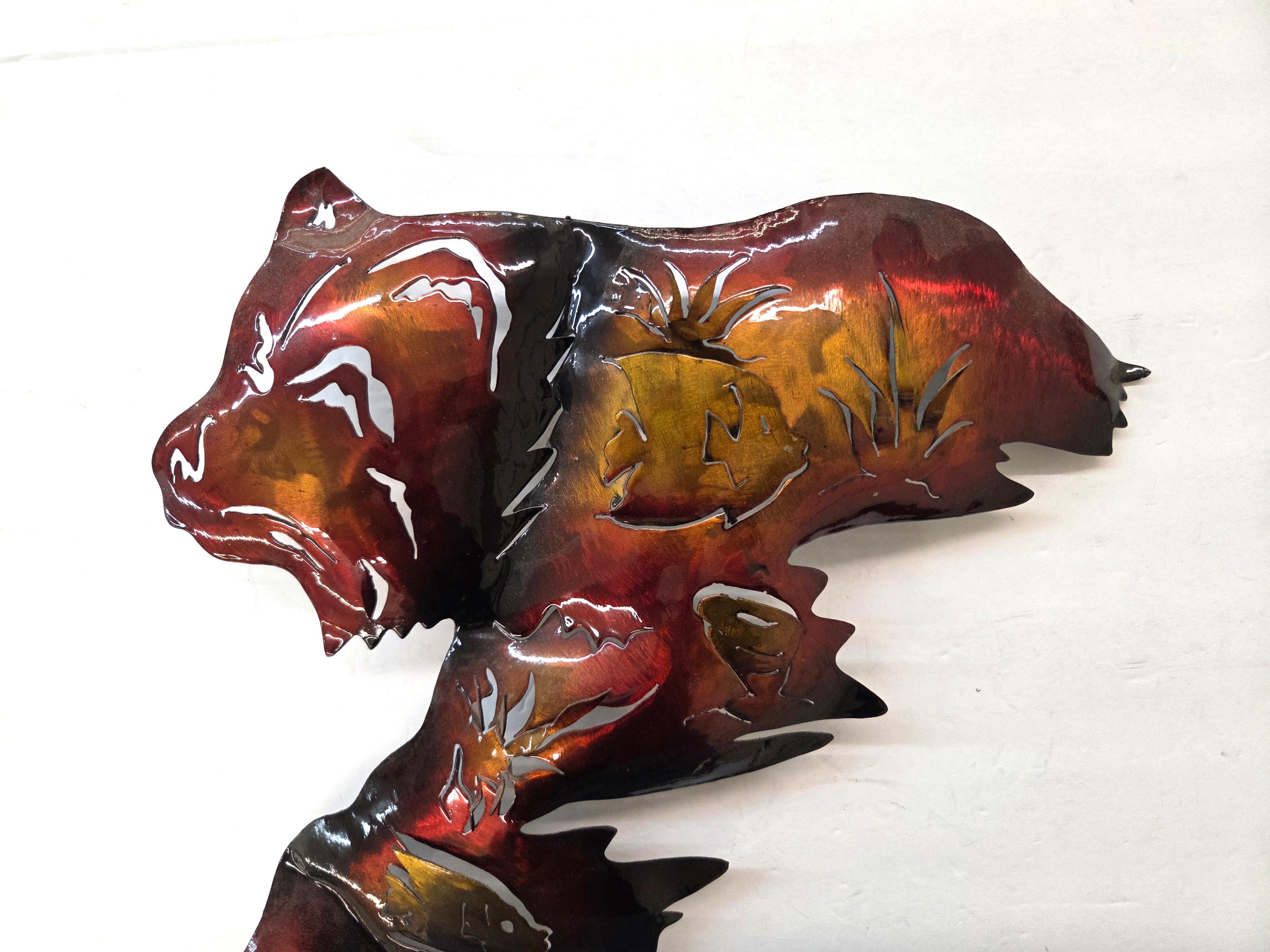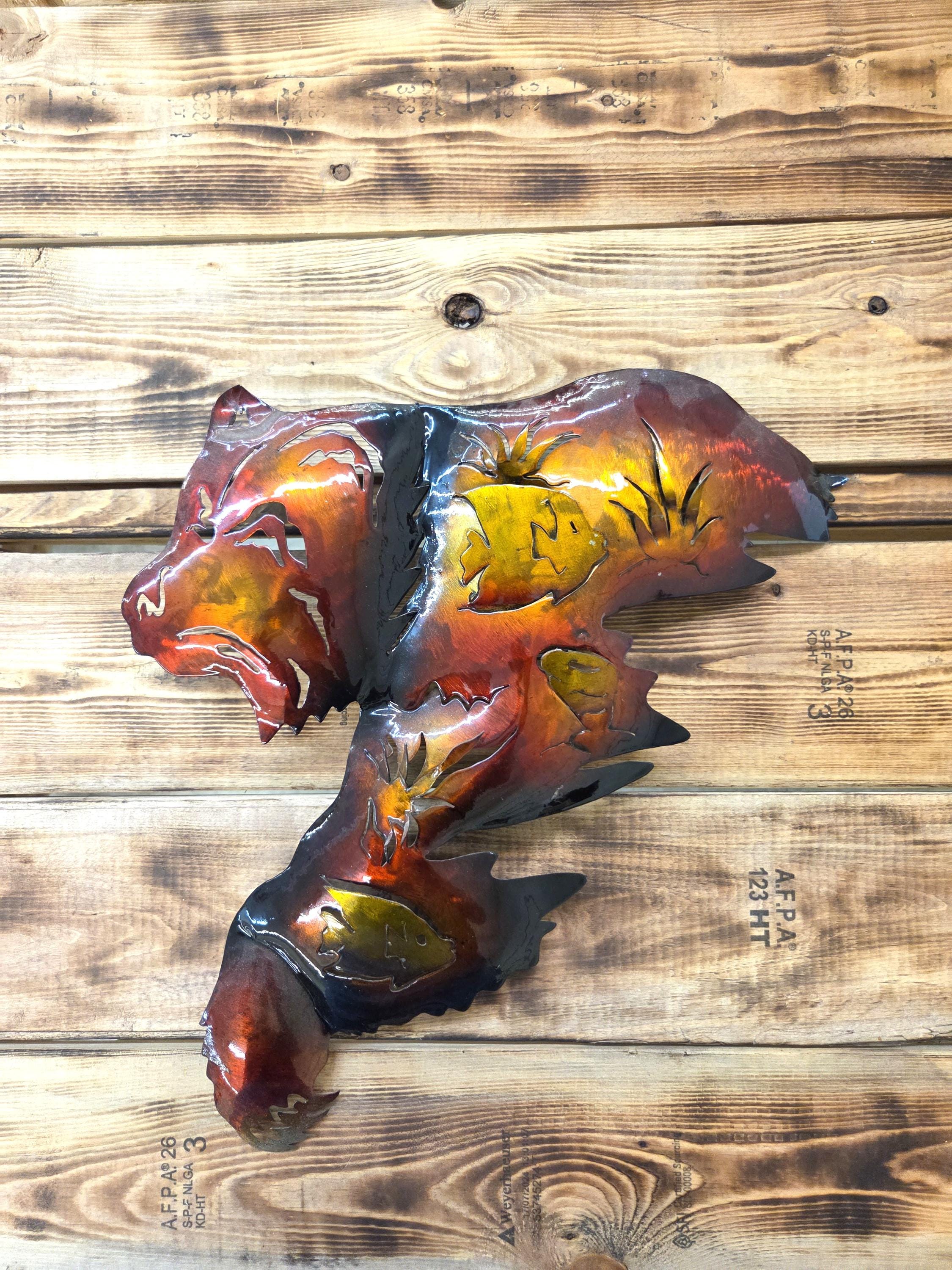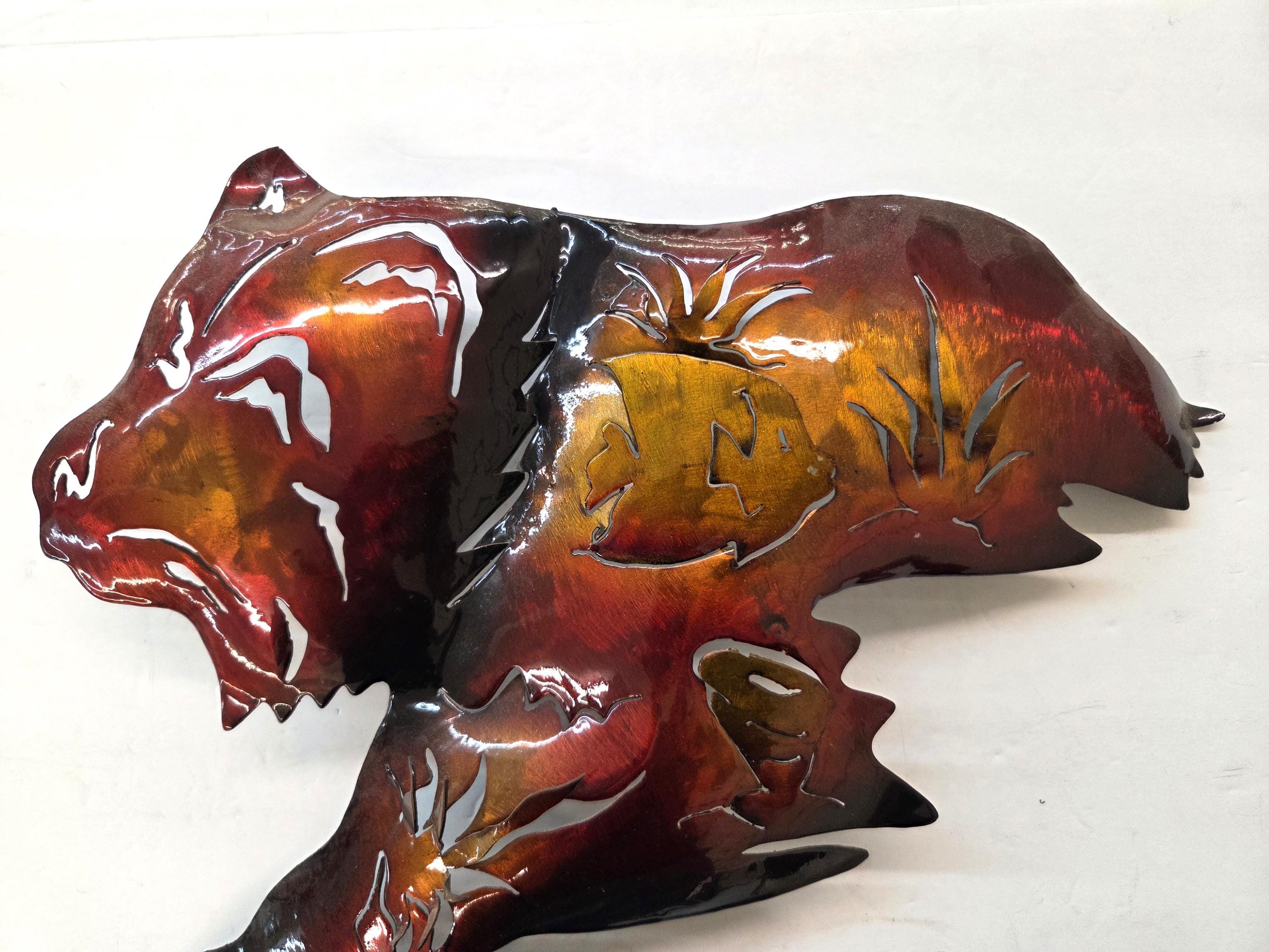 This handcrafted 19" Bear Metal Wall Art brings a warm, rustic North Woods feel to any space. Each piece is cut, shaped, and finished by hand, giving it a dimensional look that stands out beautifully on cabin walls, lodge‑style rooms, or nature‑inspired homes. The layered metal design highlights the bear’s silhouette with depth and texture, creating a striking focal point that feels both rugged and artistic. Its durable metal construction makes it suitable for living rooms, entryways, patios, or anywhere you want to add a touch of wilderness charm. Whether you're decorating your own space or searching for a thoughtful gift for wildlife lovers, this piece adds character, craftsmanship, and a timeless outdoor spirit.