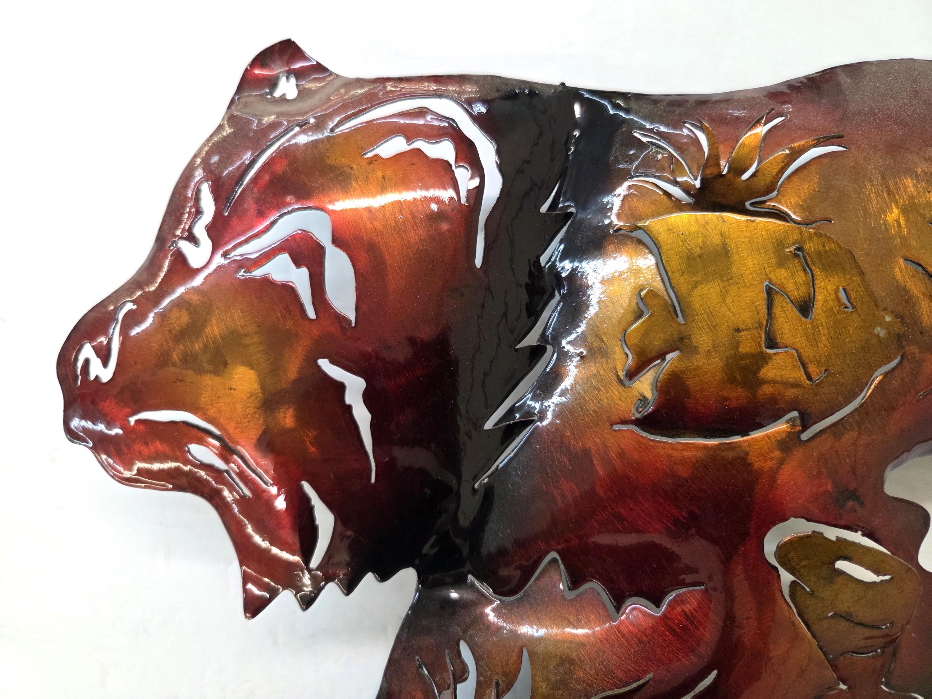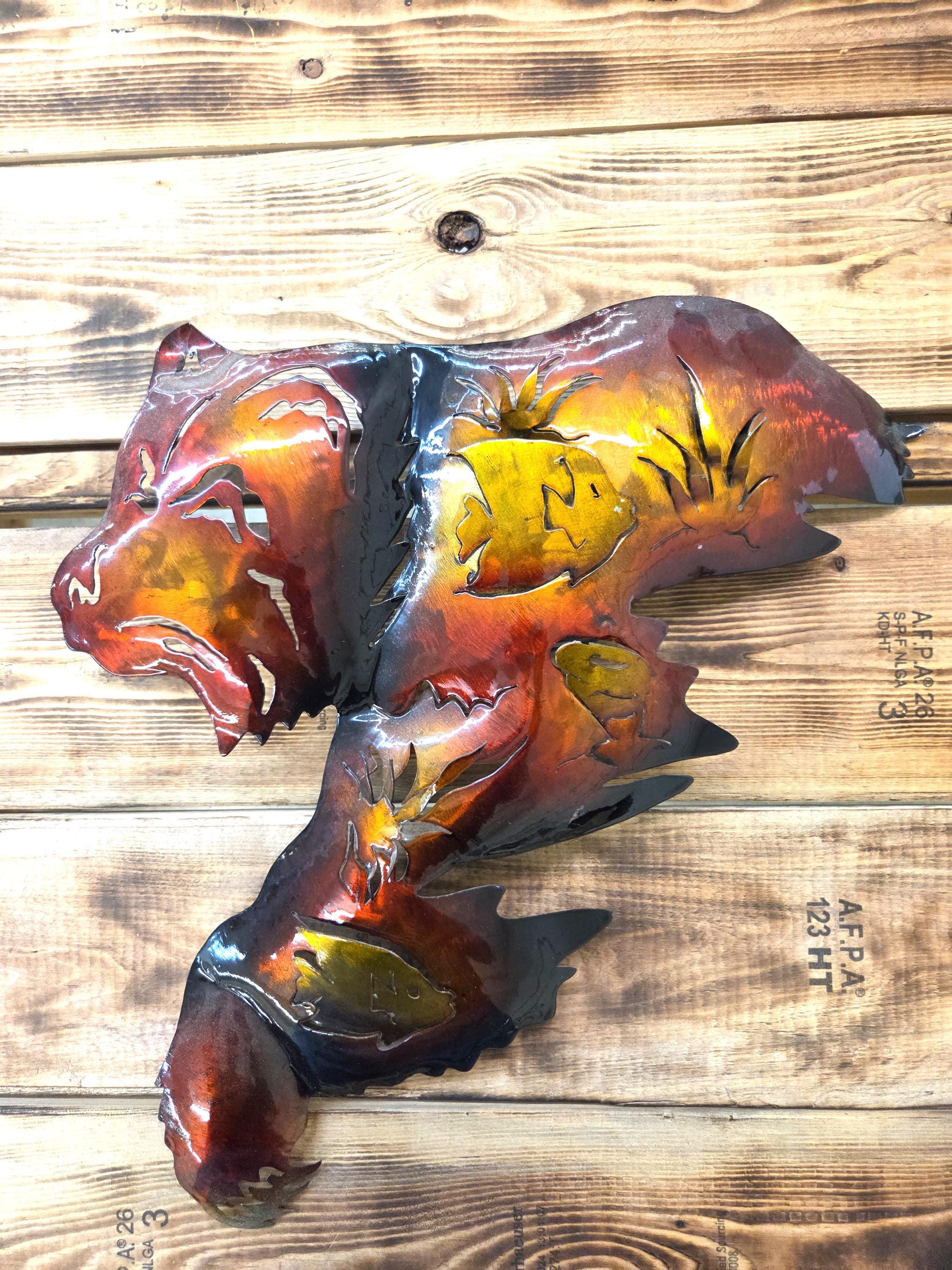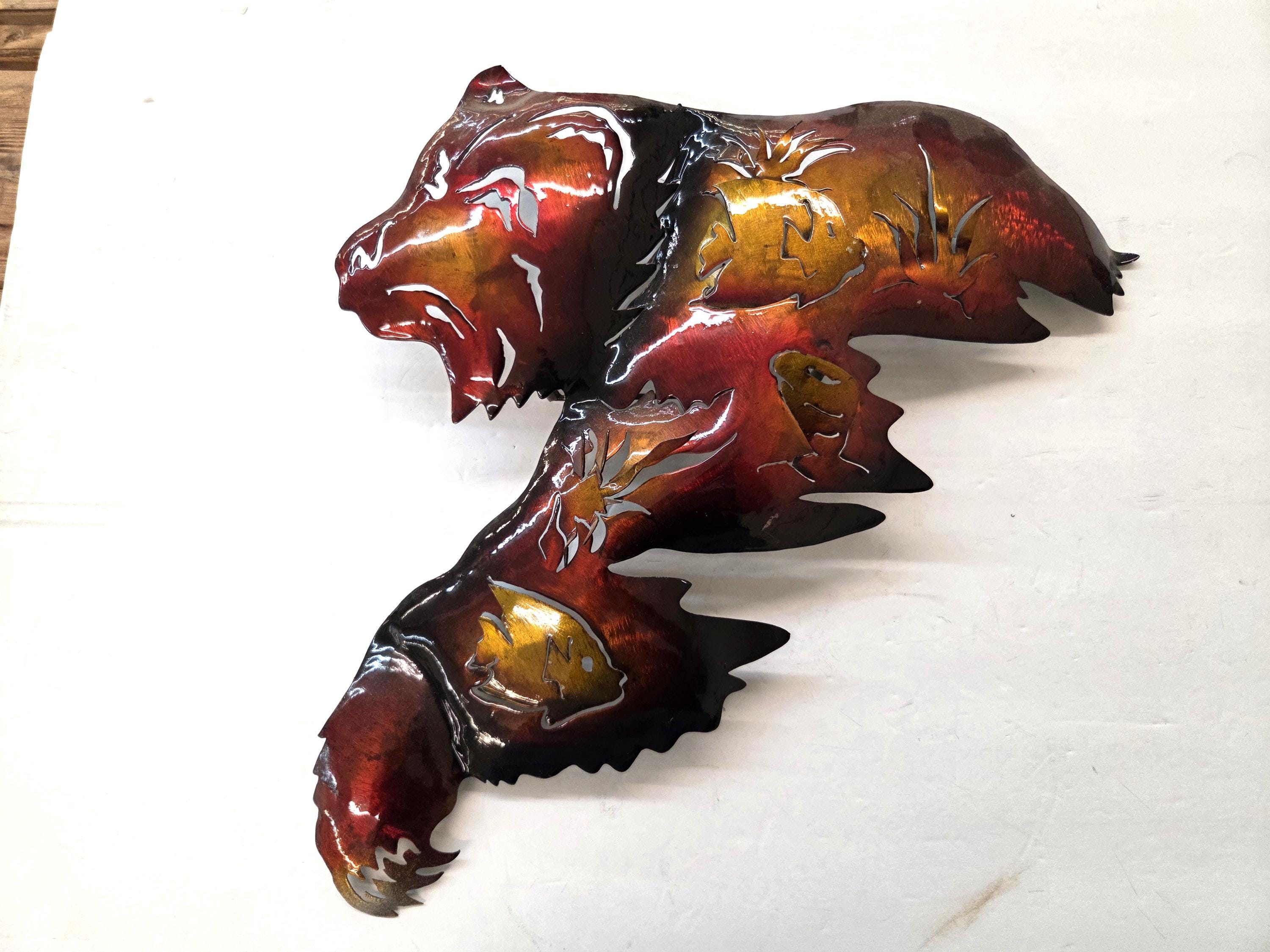 This handcrafted 19" Bear Metal Wall Art brings a warm, rustic North Woods feel to any space. Each piece is cut, shaped, and finished by hand, giving it a dimensional look that stands out beautifully on cabin walls, lodge‑style rooms, or nature‑inspired homes. The layered metal design highlights the bear’s silhouette with depth and texture, creating a striking focal point that feels both rugged and artistic. Its durable metal construction makes it suitable for living rooms, entryways, patios, or anywhere you want to add a touch of wilderness charm. Whether you're decorating your own space or searching for a thoughtful gift for wildlife lovers, this piece adds character, craftsmanship, and a timeless outdoor spirit.