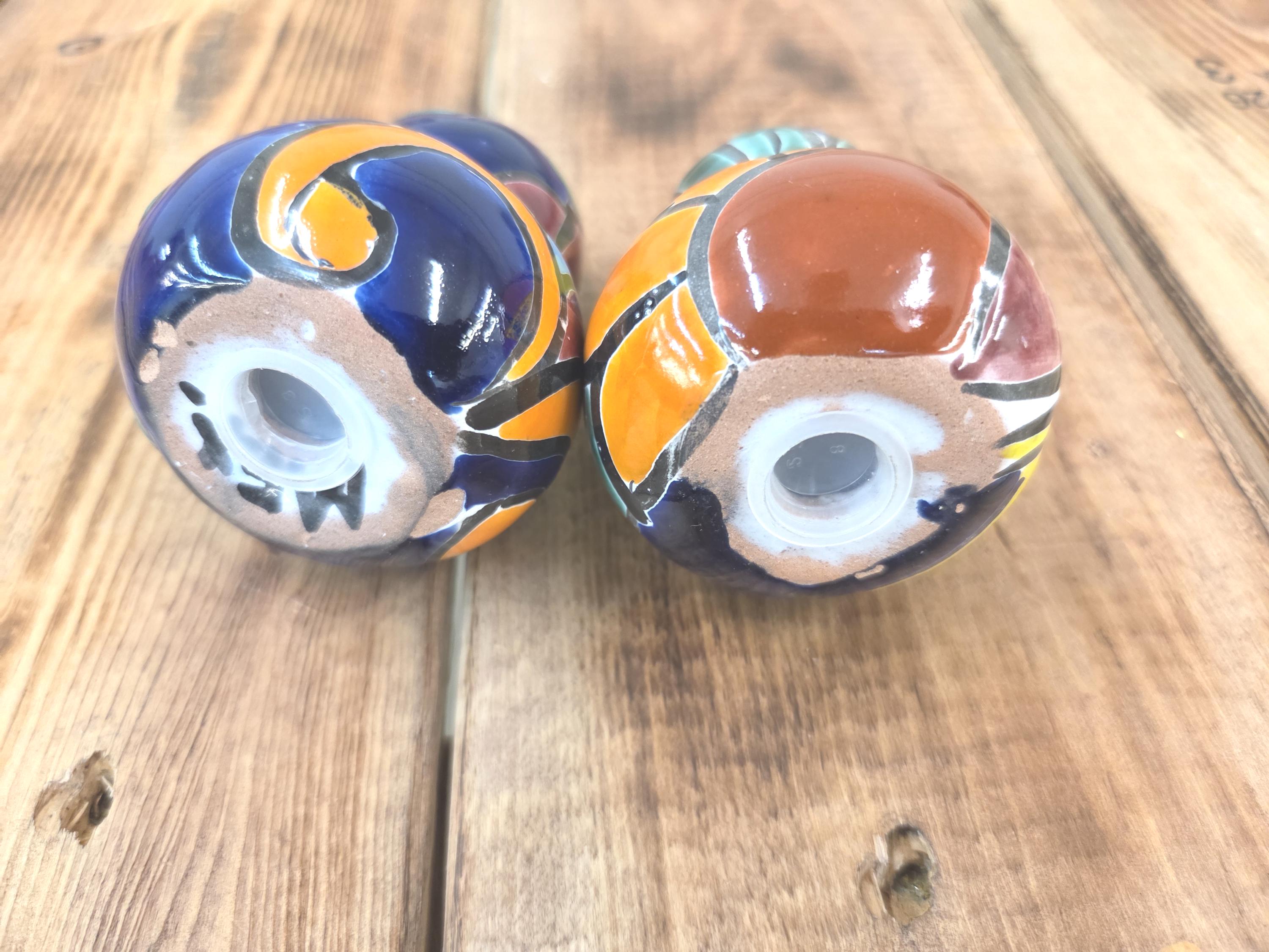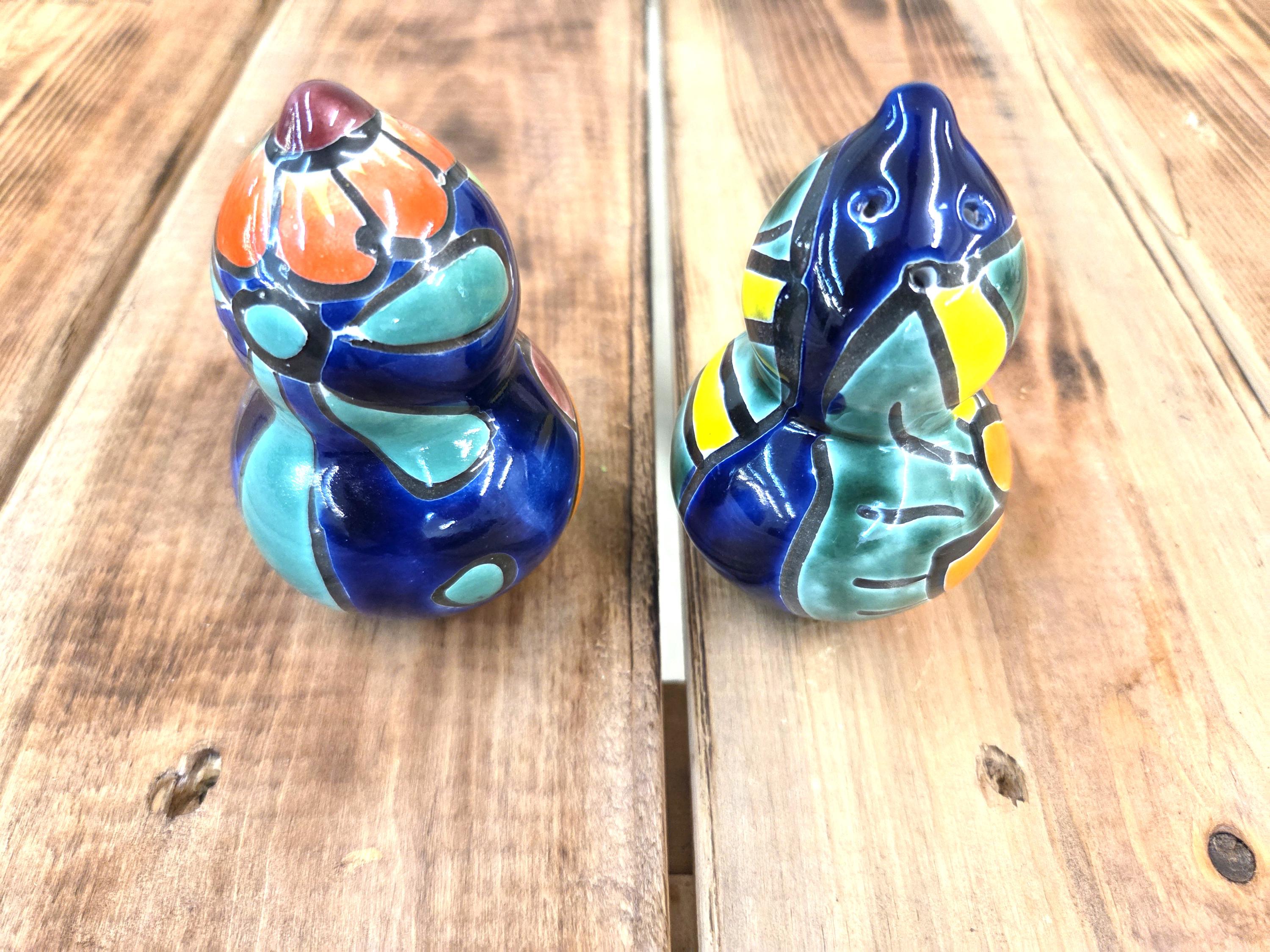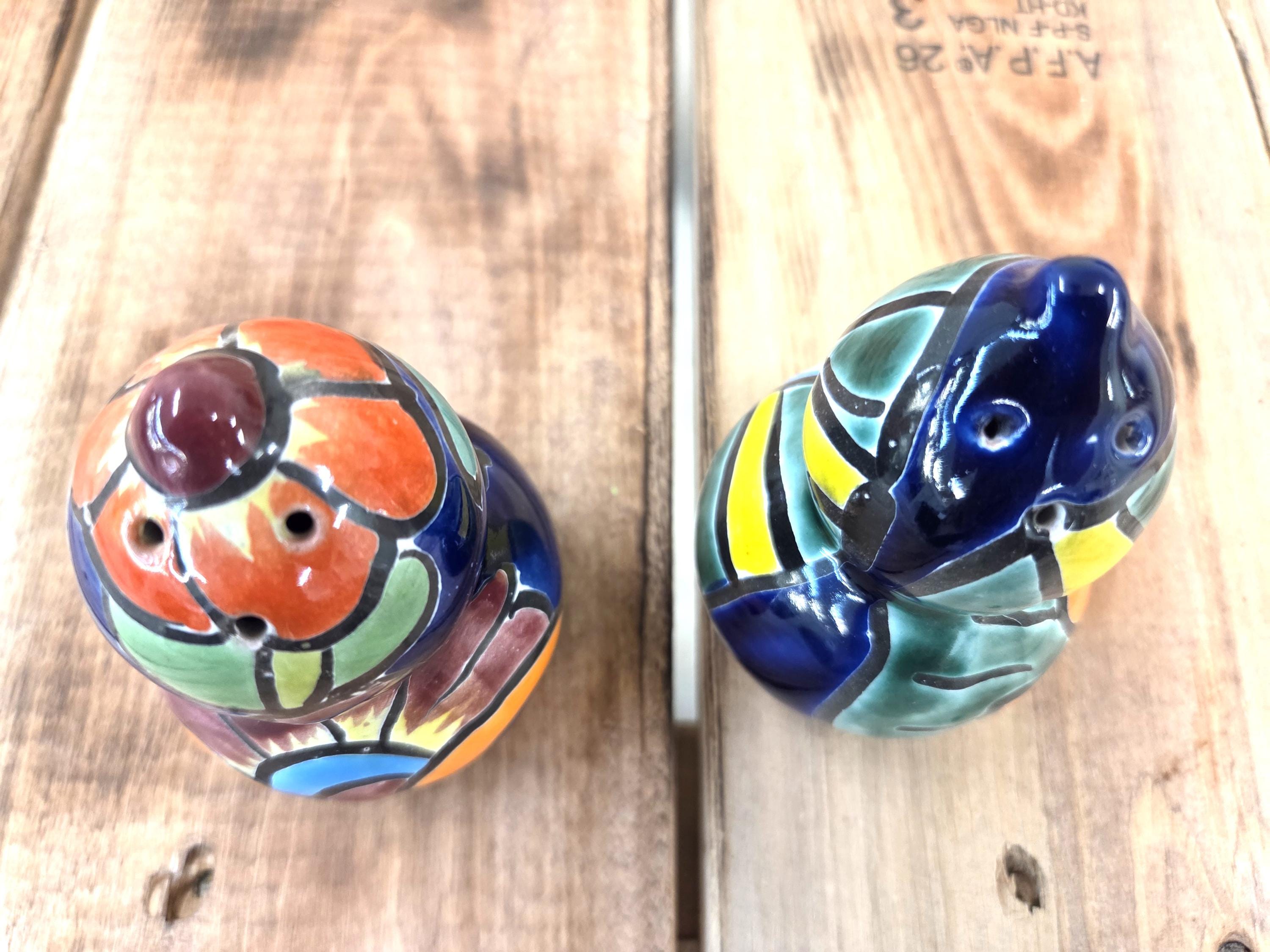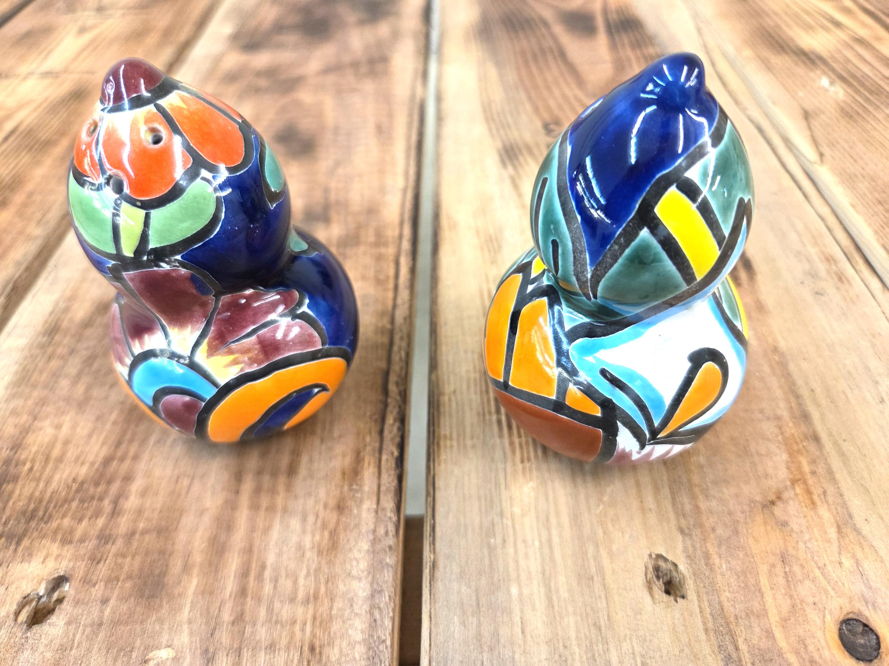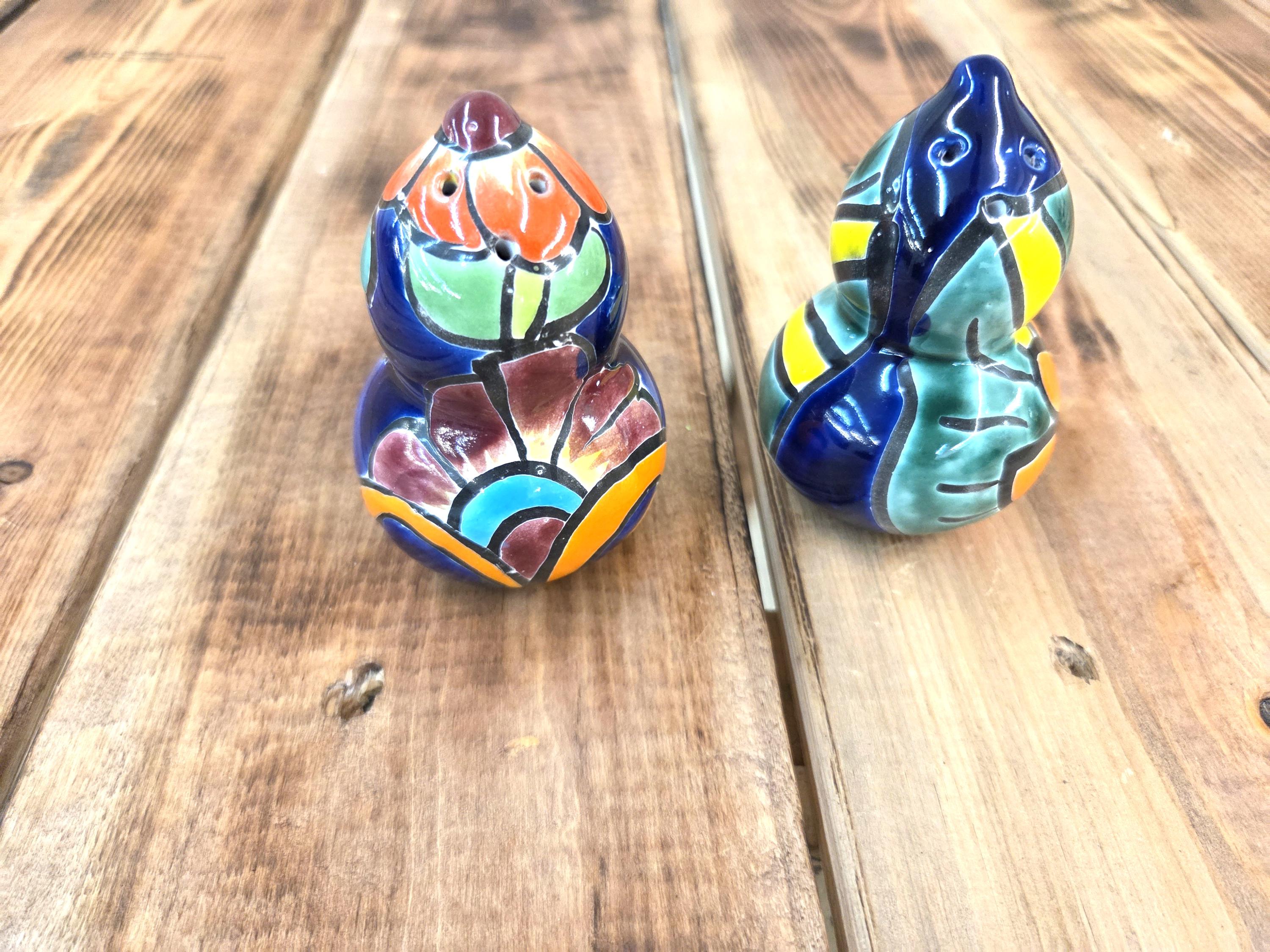 Bring a burst of color to your kitchen with this Handmade Talavera Pottery Salt & Pepper Shaker Set, beautifully crafted and hand‑painted in the traditional Mexican style. Each piece features bold, vibrant patterns inspired by classic Talavera folk art, making it not just a functional table essential but a lively accent for your home décor. The glossy finish and intricate detailing showcase the artistry behind every brushstroke, giving you a unique set that feels joyful, authentic, and full of character. Perfect as a thoughtful gift or a cheerful addition to your own table, these shakers bring a touch of Mexico’s rich artistic heritage to every meal.