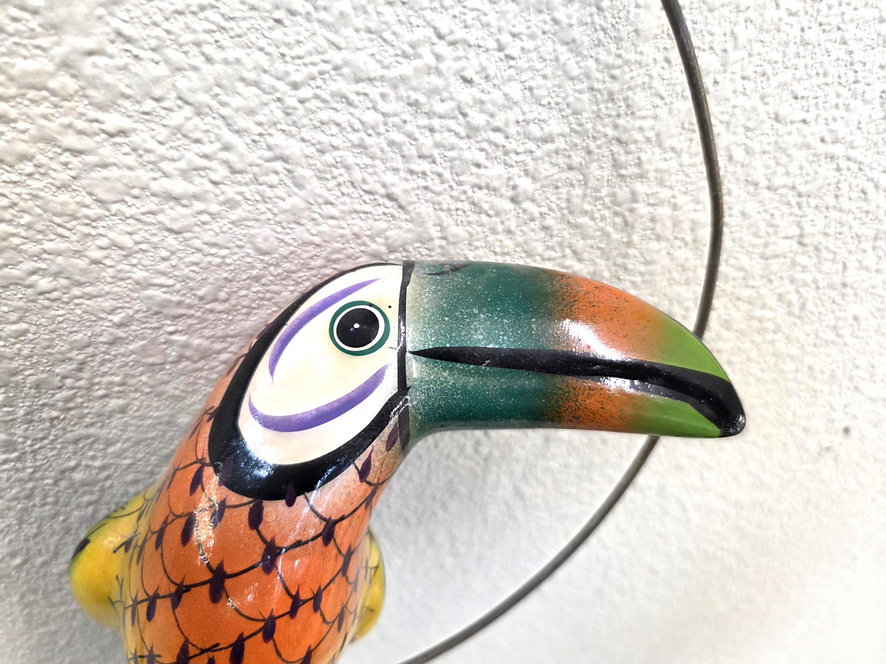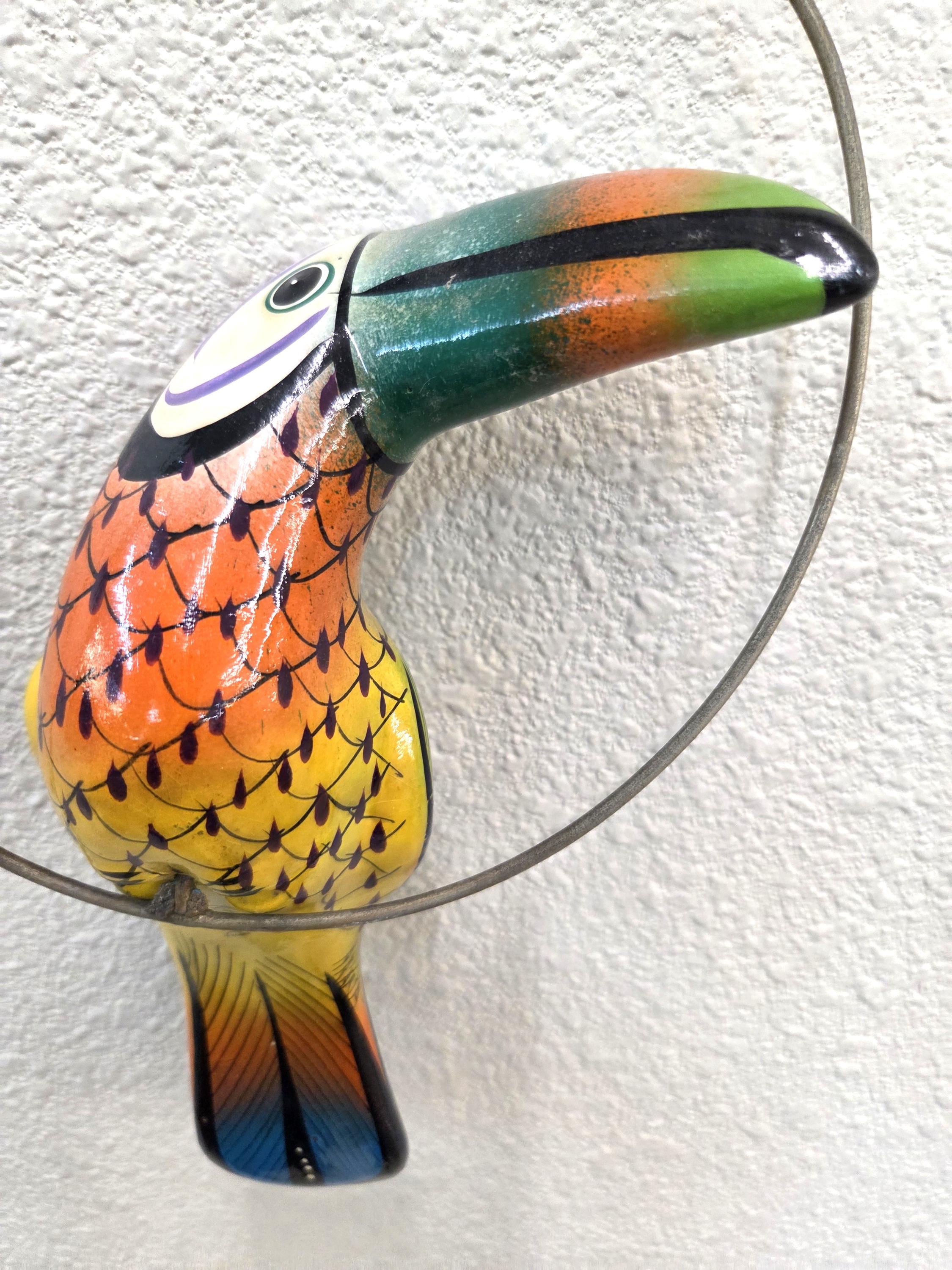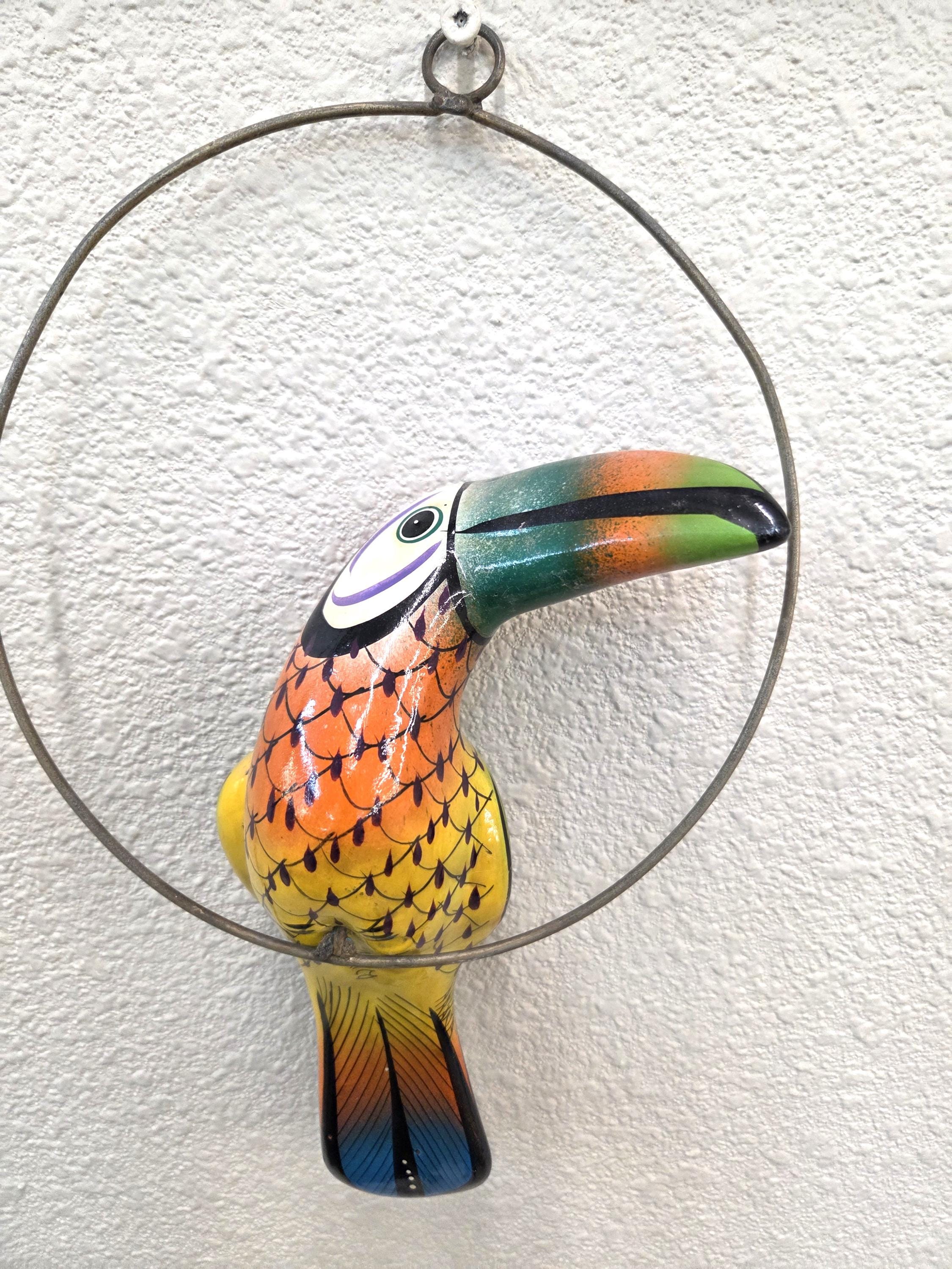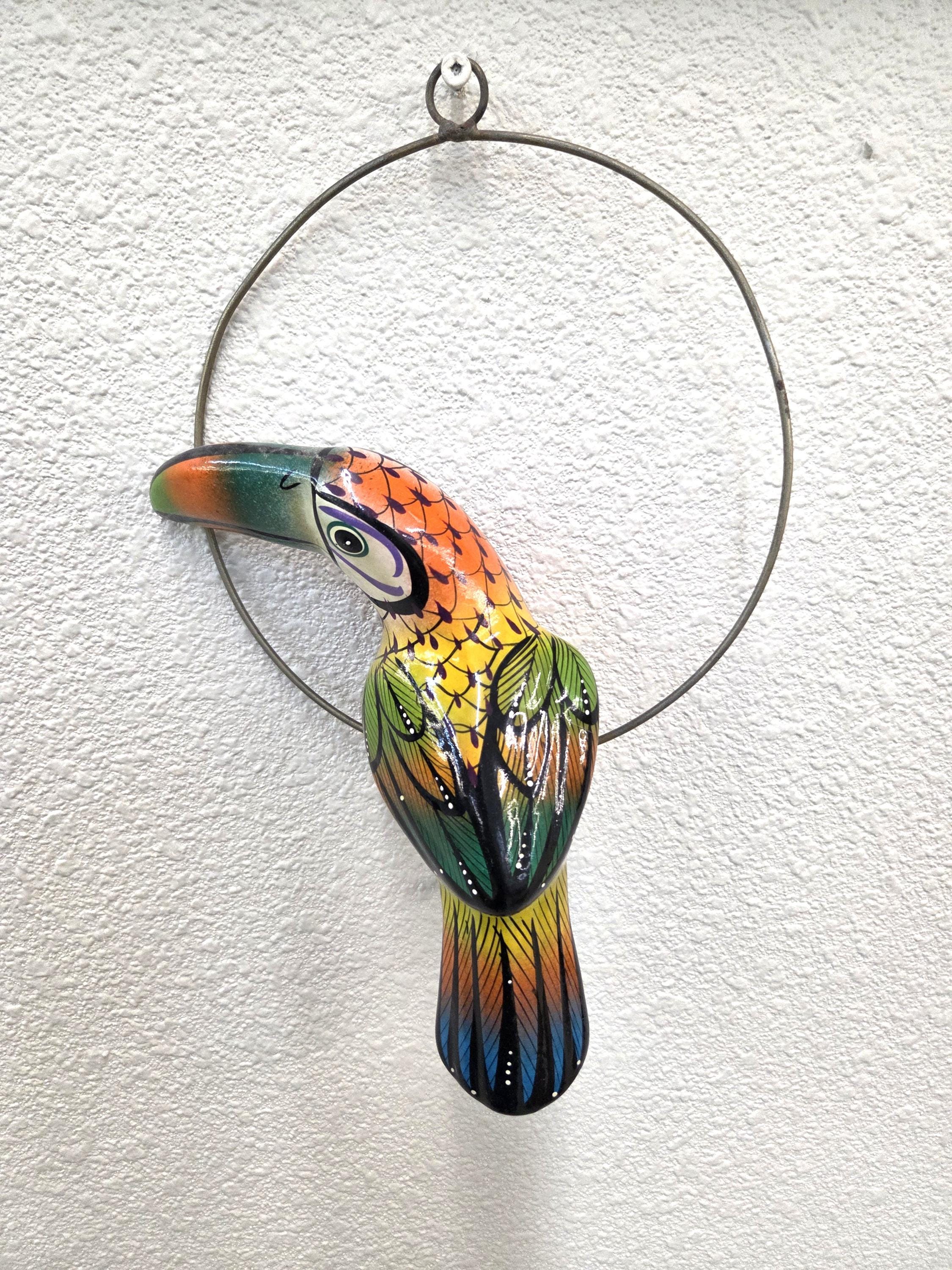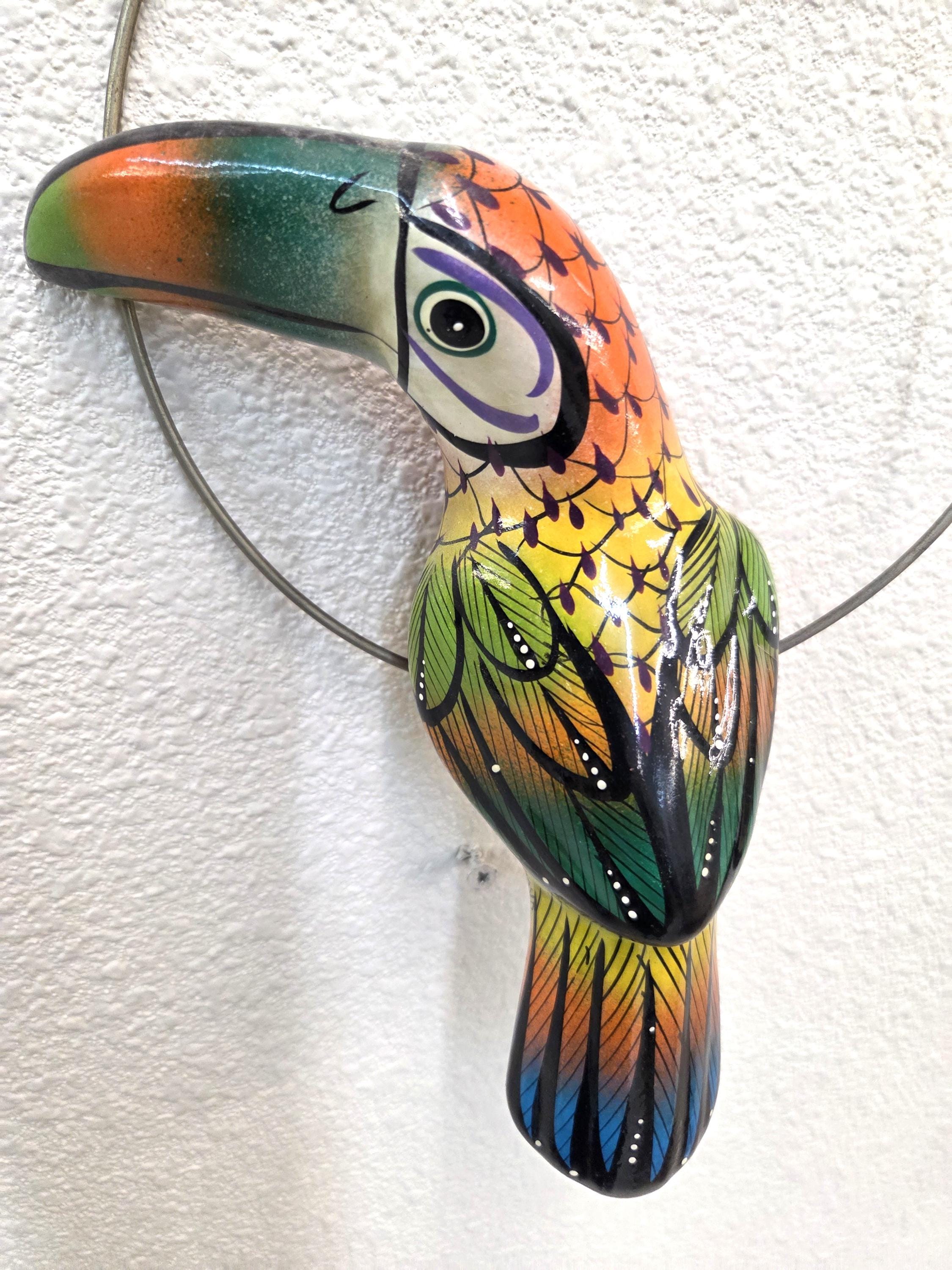 Bring a touch of vibrant Mexican folk art into your home with this beautiful 8½‑inch hanging toucan parrot, lovingly handcrafted and hand‑painted by skilled artisans in Mexico. Perched on a sturdy metal ring, each parrot features bold colors, expressive details, and unique brushwork that make every piece one‑of‑a‑kind. Its cheerful presence adds personality to any space—perfect for brightening up patios, kitchens, sunrooms, or gallery walls. Whether you’re a collector of artisan crafts or simply love colorful décor, this charming hanging parrot brings artistry and joy wherever it’s displayed.