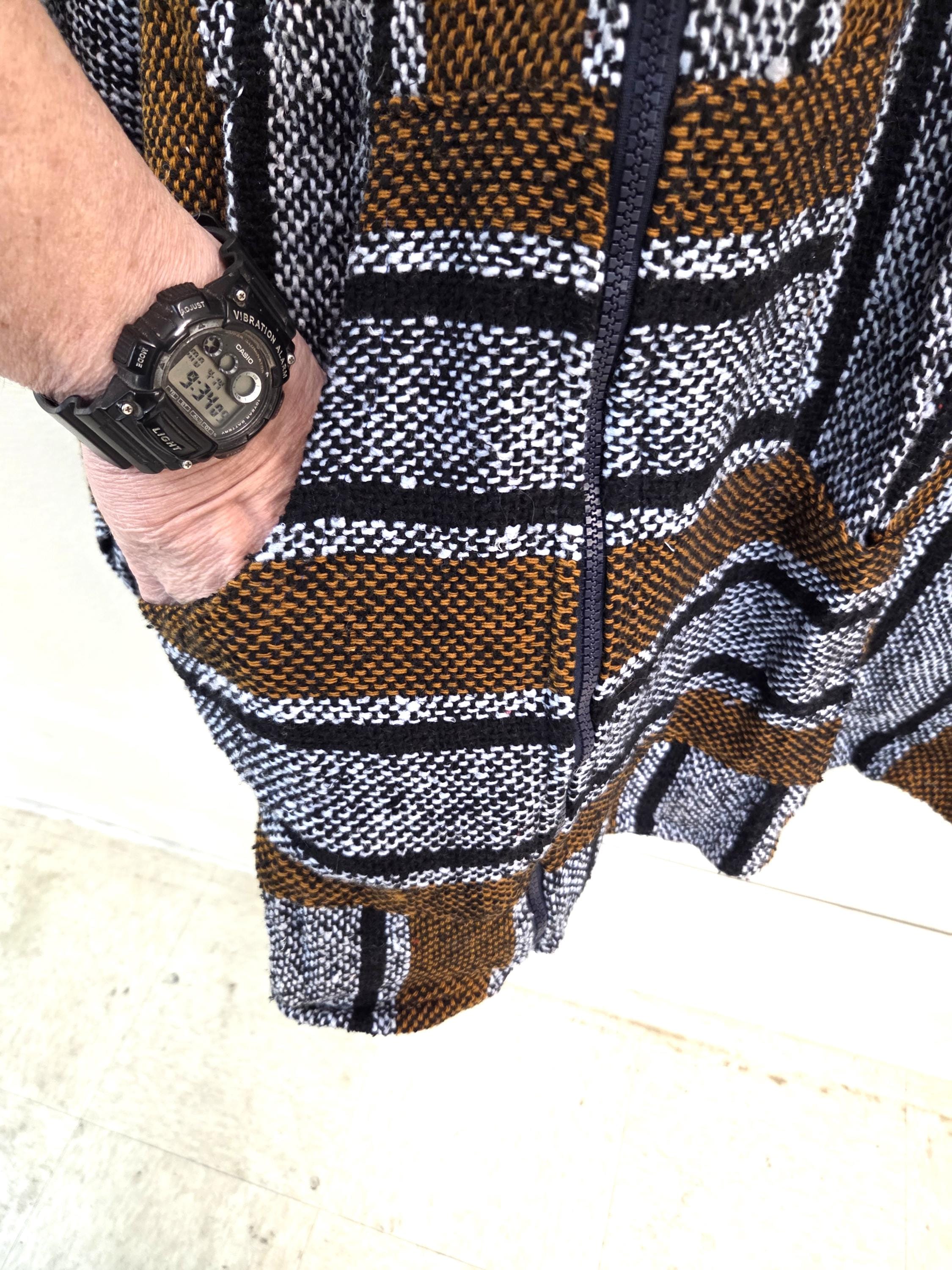 Beautiful Baja Classic Hoodie Zipper Surfer Drug Rug from Mexico! This poncho would look wonderful on guys and even much better on our lovely lady friends. You will be getting the poncho that is actually shown above in the pictures above, not some poncho that looks kinda looks like it or is kinda the same color. We will soon have many different styles & colors of ponchos to pick from in many different sizes. You may also want to check out our awesome zippered ponchos.